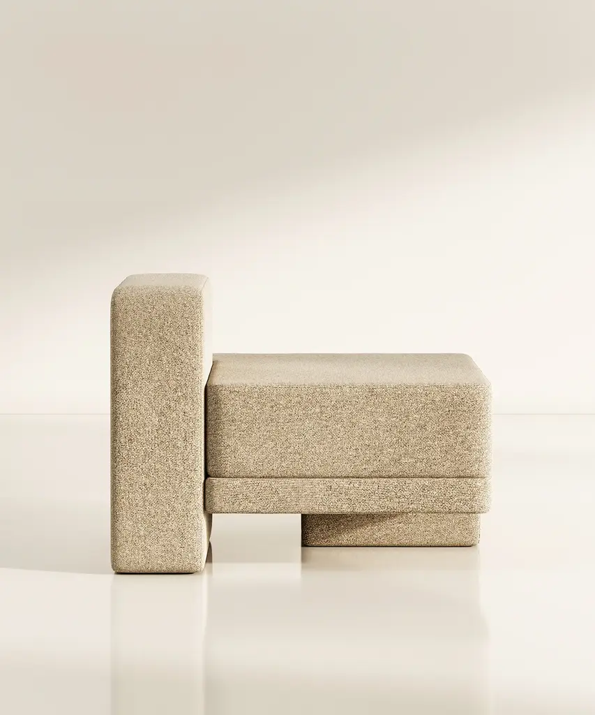 The Sarsen Series, designed by MKCA for TRNK Collection, embraces the dynamic interplay of objects, while emphasizing articulation and open-endedness. Drawing inspiration from joinery, the seating’s asymmetrical distribution of heft and lift ensures visual continuity throughout limitless configurations. The irregular shapes of the rugs reinforce the multidirectional nature of the collection, intending to ground a space without giving it hard boundaries. The Sarsen Series highlights the transformative power of elements in shaping function, habitation, and interaction.