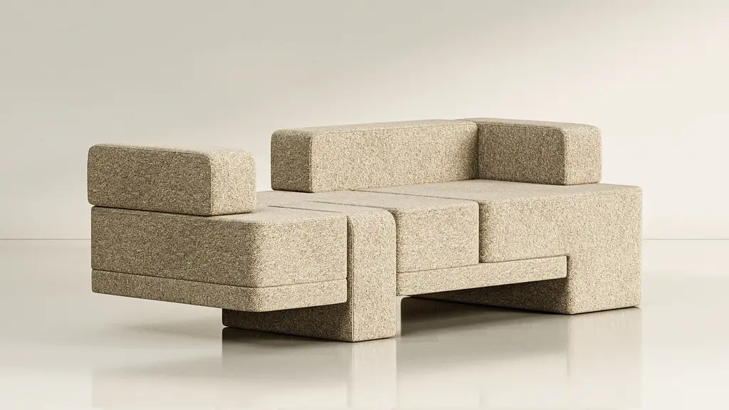 The Sarsen Series, designed by MKCA for TRNK Collection, embraces the dynamic interplay of objects, while emphasizing articulation and open-endedness. Drawing inspiration from joinery, the seating’s asymmetrical distribution of heft and lift ensures visual continuity throughout limitless configurations. The irregular shapes of the rugs reinforce the multidirectional nature of the collection, intending to ground a space without giving it hard boundaries. The Sarsen Series highlights the transformative power of elements in shaping function, habitation, and interaction.
