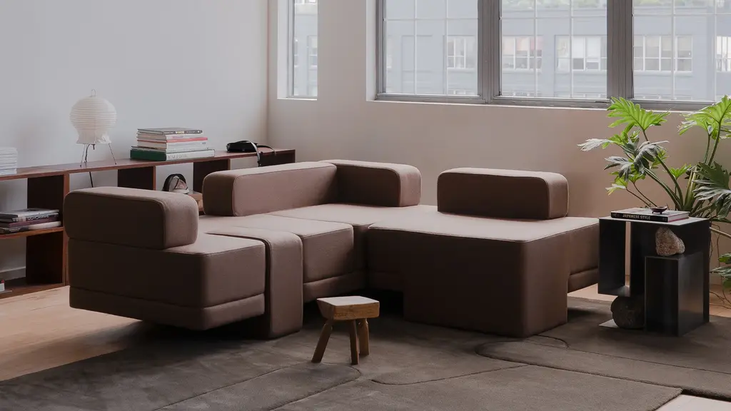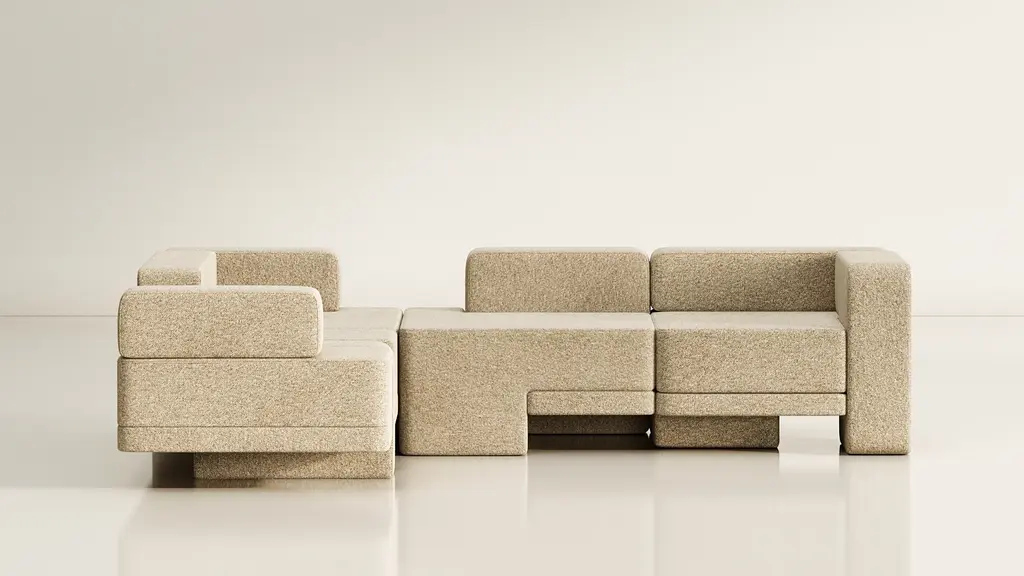 The Sarsen Series, designed by MKCA for TRNK Collection, embraces the dynamic interplay of objects, while emphasizing articulation and open-endedness. Drawing inspiration from joinery, the seating’s asymmetrical distribution of heft and lift ensures visual continuity throughout limitless configurations. The irregular shapes of the rugs reinforce the multidirectional nature of the collection, intending to ground a space without giving it hard boundaries. The Sarsen Series highlights the transformative power of elements in shaping function, habitation, and interaction.