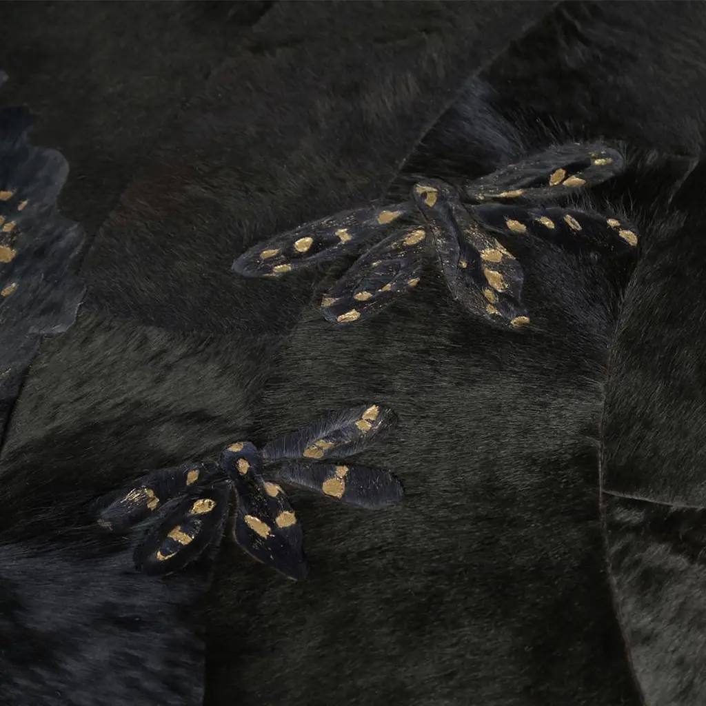 Ancient artistry meets modern luxury in striking monochrome embellished with glittering gold. Sasha Bikoff transforms the centuries-old Japanese shibori technique into a contemporary masterpiece. This exclusive rug showcases dramatic gradations of black, & charcoal, with splashes of gold —a sophisticated palette that commands attention while maintaining timeless elegance.Art Hide's revolutionary Fusion technique creates seamless perfection without a single stitch. The result? A plush 1/4-inch thick surface that's built to last, with no rug pad required.Key Features:Zero-stitch construction for flawless finishCustom sizing and shaping availableExceptional durability with latex-backed constructionRich monochrome palette in black, charcoal, and gold tonesHandcrafted luxury meets innovative techniqueFull customization available in any size, shape, or color
