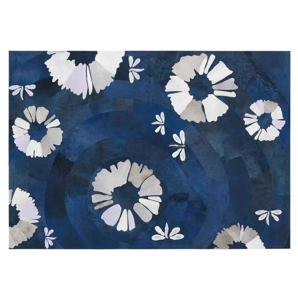 Prepare to be transported to a world of exoticism from the east, where craftsmanship and creativity meet in perfect harmony. Visionary designer Sasha Bikoff has skillfully infused the ancient Japanese dying technique of Shibori into this exquisite rug. Drawing inspiration from her in-depth research and passion for handmade textiles, she has expertly combined tradition with innovation.The magic begins with Art Hide's in-house dyeing process, which showcases a kaleidoscope of indigo blues, grays and lilacs. Art Hide's innovative Fusion technique takes center stage in the creation of this rug. With absolutely no stitching, the seamless finish of the Shibori Rug is truly a sight to behold.The rug boasts exceptional durability and longevity. Its exquisite patterns, intricate detailing, and luxurious materials exude opulence and refinement. The Shibori rug comes as a standard 7' x 10' (213 x 304cm) and can be fully customised to any size, shape or colour. The Fusion technique applies layers of latex to the back of the rug, resulting in a 1/4 inch thickness so the rug is plush and extremely durable. No need for a rug pad.