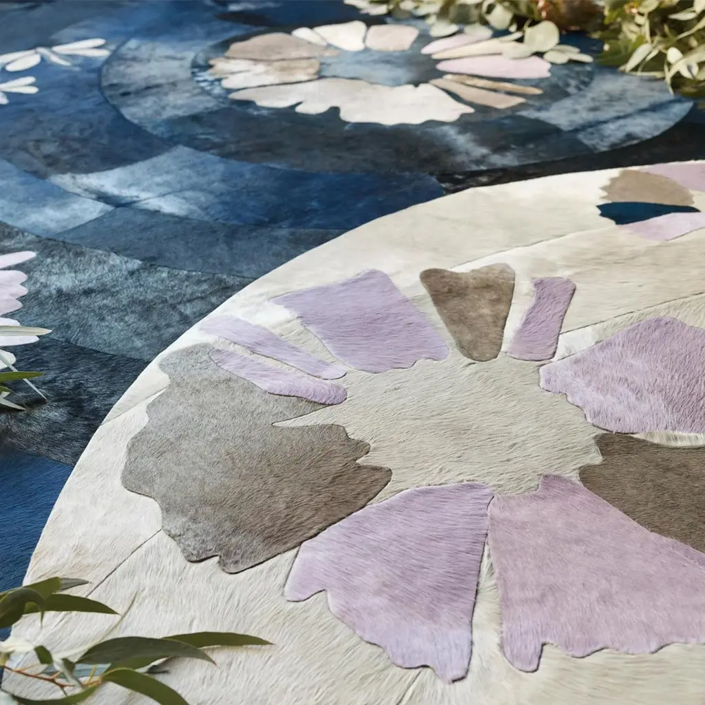 Prepare to be transported to a world of exoticism from the east, where craftsmanship and creativity meet in perfect harmony. Visionary designer Sasha Bikoff has skillfully infused the ancient Japanese dying technique of Shibori into this exquisite rug. Drawing inspiration from her in-depth research and passion for handmade textiles, she has expertly combined tradition with innovation.The magic begins with Art Hide's in-house dyeing process, which showcases a kaleidoscope of indigo blues, grays and lilacs. Art Hide's innovative Fusion technique takes center stage in the creation of this rug. With absolutely no stitching, the seamless finish of the Shibori Rug is truly a sight to behold.The rug boasts exceptional durability and longevity. Its exquisite patterns, intricate detailing, and luxurious materials exude opulence and refinement. The Shibori rug comes as a standard 7' x 10' (213 x 304cm) and can be fully customised to any size, shape or colour. The Fusion technique applies layers of latex to the back of the rug, resulting in a 1/4 inch thickness so the rug is plush and extremely durable. No need for a rug pad.