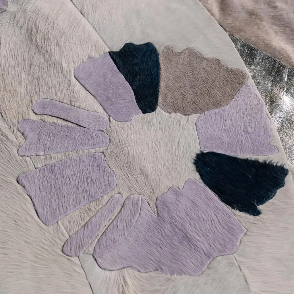 Prepare to be transported to a world of exoticism from the east, where craftsmanship and creativity meet in perfect harmony. Visionary designer Sasha Bikoff has skillfully infused the ancient Japanese dying technique of Shibori into this exquisite rug. Drawing inspiration from her in-depth research and passion for handmade textiles, she has expertly combined tradition with innovation.The magic begins with Art Hide's in-house dyeing process, which showcases a kaleidoscope of indigo blues, grays and lilacs. Art Hide's innovative Fusion technique takes center stage in the creation of this rug. With absolutely no stitching, the seamless finish of the Shibori Rug is truly a sight to behold.The rug boasts exceptional durability and longevity. Its exquisite patterns, intricate detailing, and luxurious materials exude opulence and refinement. The Shibori rug comes as a standard 7' x 10' (213 x 304cm) and can be fully customised to any size, shape or colour. The Fusion technique applies layers of latex to the back of the rug, resulting in a 1/4 inch thickness so the rug is plush and extremely durable. No need for a rug pad.