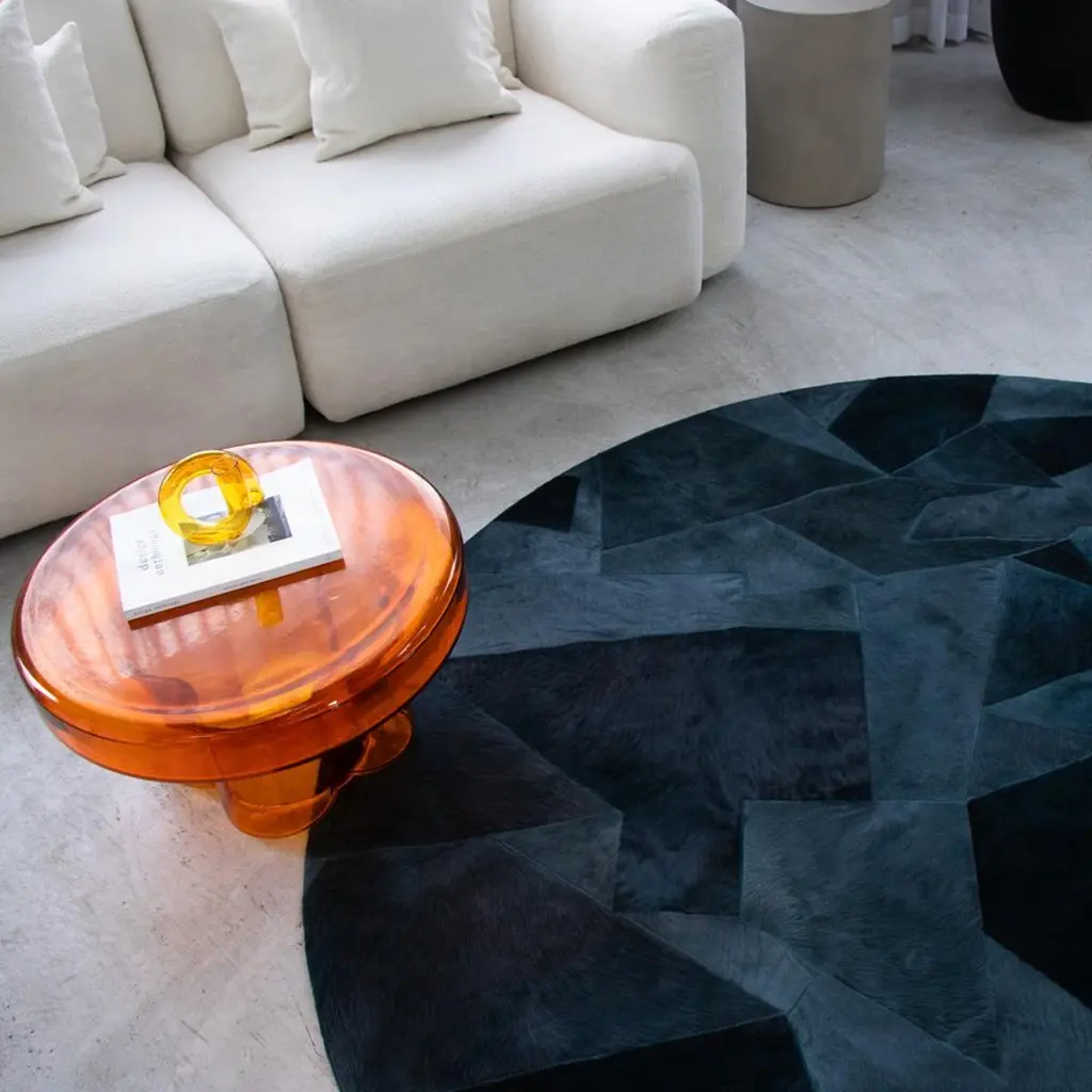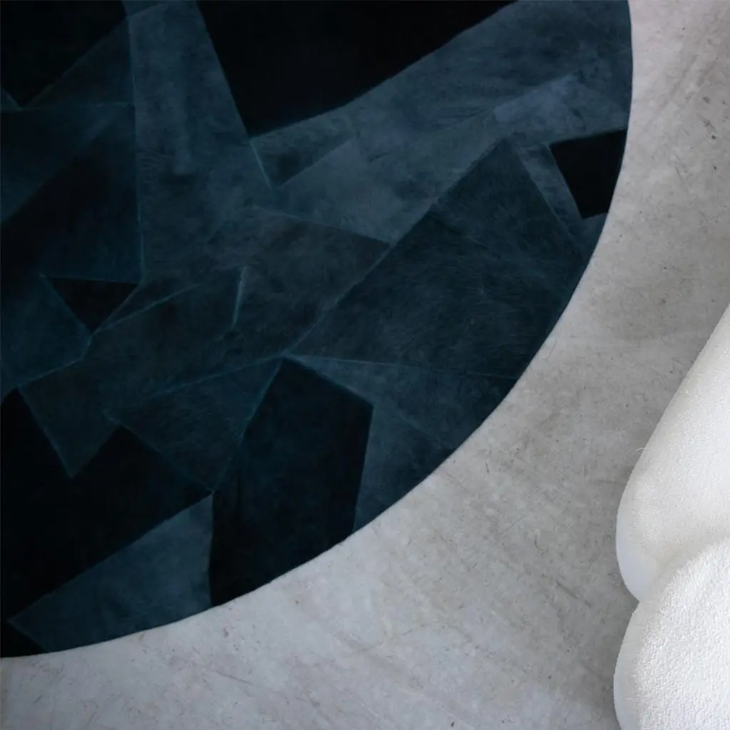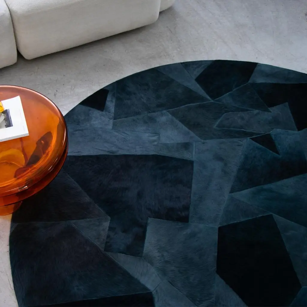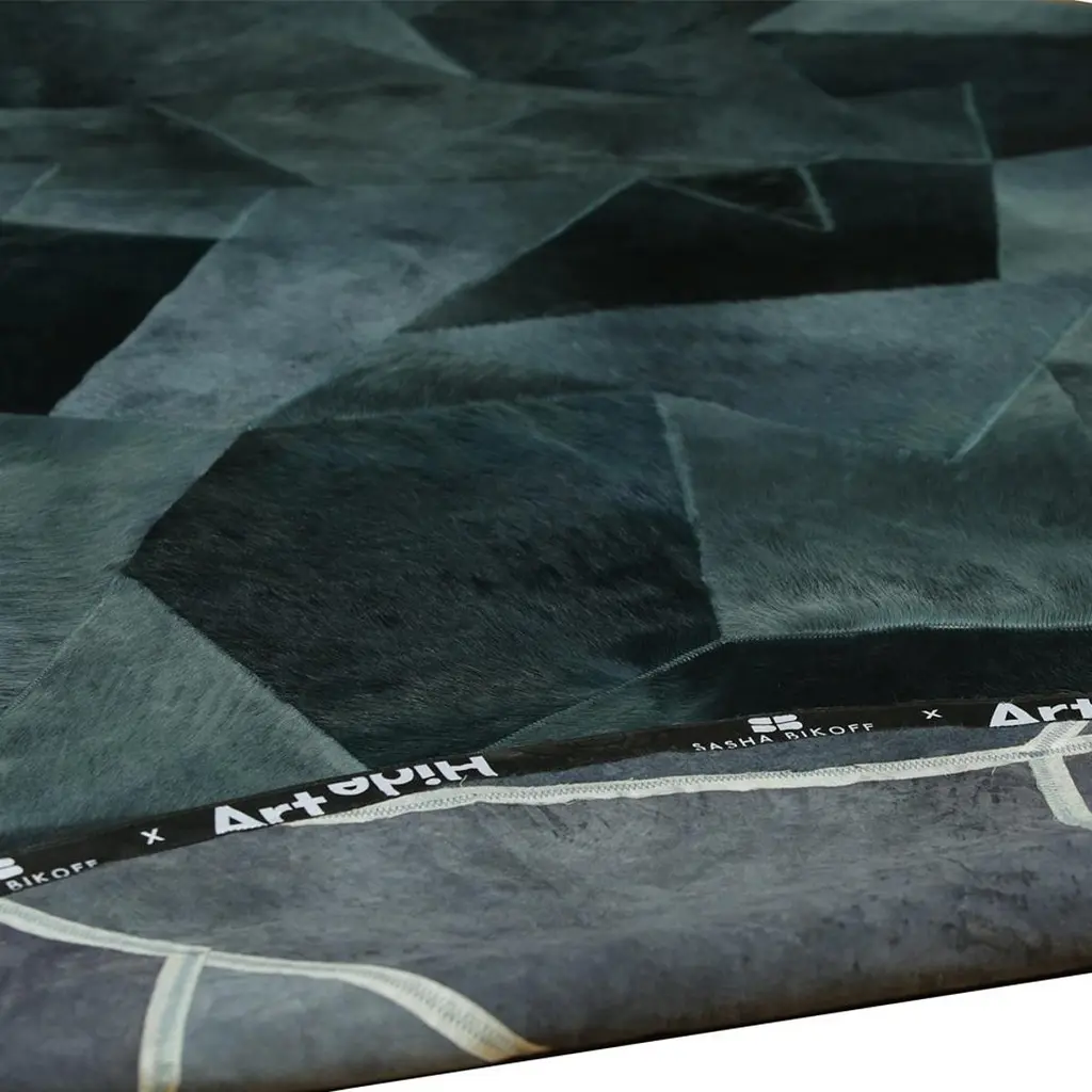 70s patchwork meets high fashion in sultry petrol tones. Sasha Bikoff's Fragments Rug transforms vintage leather patchwork inspiration into luxurious floor art. The inky petrol palette—moody, oily depths that shift between midnight blue and charcoal—creates an atmosphere of mysterious allure and seductive sophistication.Art Hide's masterful stitching technique brings together carefully curated color fragments, blurring the line between fashion and interior design.Key Features:Vintage-inspired patchwork design with contemporary edgePetrol colorway - inky, moody depths with sultry appealTraditional stitching craftsmanship with a durable, machine woven commercial grade nylon threadDouble edge finished with ribbon on rearFull customization available in any size, shape, or color