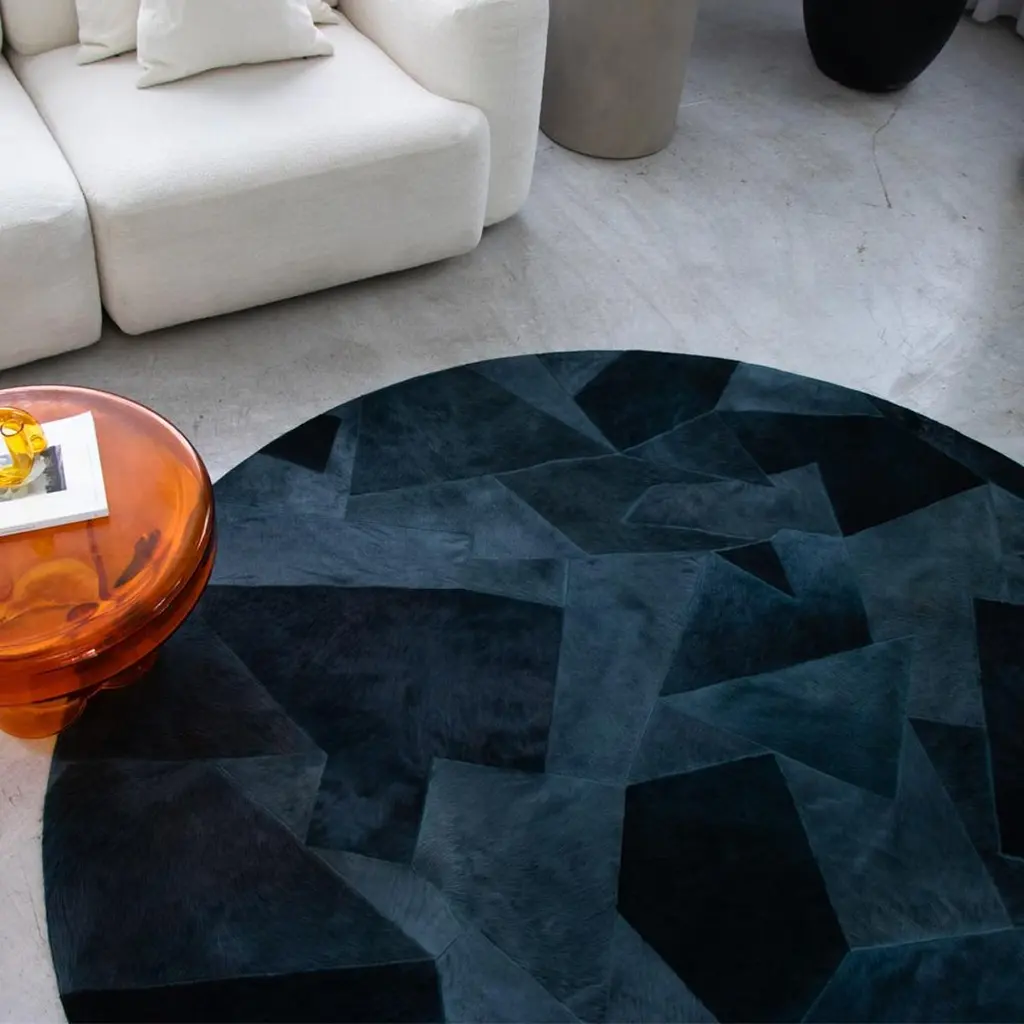 70s patchwork meets high fashion in sultry petrol tones. Sasha Bikoff's Fragments Rug transforms vintage leather patchwork inspiration into luxurious floor art. The inky petrol palette—moody, oily depths that shift between midnight blue and charcoal—creates an atmosphere of mysterious allure and seductive sophistication.Art Hide's masterful stitching technique brings together carefully curated color fragments, blurring the line between fashion and interior design.Key Features:Vintage-inspired patchwork design with contemporary edgePetrol colorway - inky, moody depths with sultry appealTraditional stitching craftsmanship with a durable, machine woven commercial grade nylon threadDouble edge finished with ribbon on rearFull customization available in any size, shape, or color