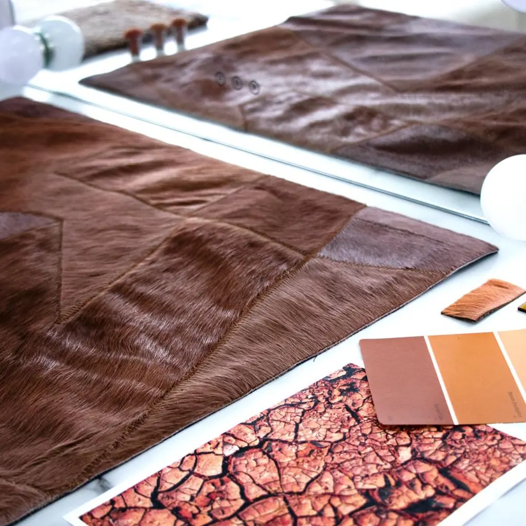 Sasha Bikoff's Fragments Rug transforms vintage leather patchwork inspiration into luxurious floor art. The rich Pink Clay palette—earthy, warm terracotta hues that evoke sun-baked desert landscapes—brings grounding warmth to any space.Art Hide's masterful stitching technique brings together carefully curated color fragments, blurring the line between fashion and interior design.Key Features:Vintage-inspired patchwork design with contemporary edgePink clay colorway - warm, earthy terracotta tonesTraditional stitching craftsmanship with a durable, machine woven commercial grade nylon threadDouble edge finished with ribbon on rearFull customization available in any size, shape, or color