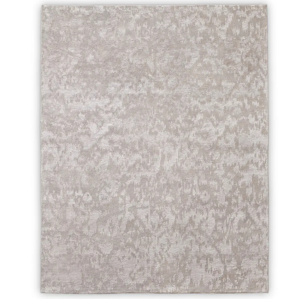 Ikat motifs trace shimmering color in our Sasha rug, masterfully knotted by hand in viscose and matte washed wool. The pattern looks fresh and contemporary, yet the mix of hand-sheared pile and fine loops evokes the patina of a vintage carpet.