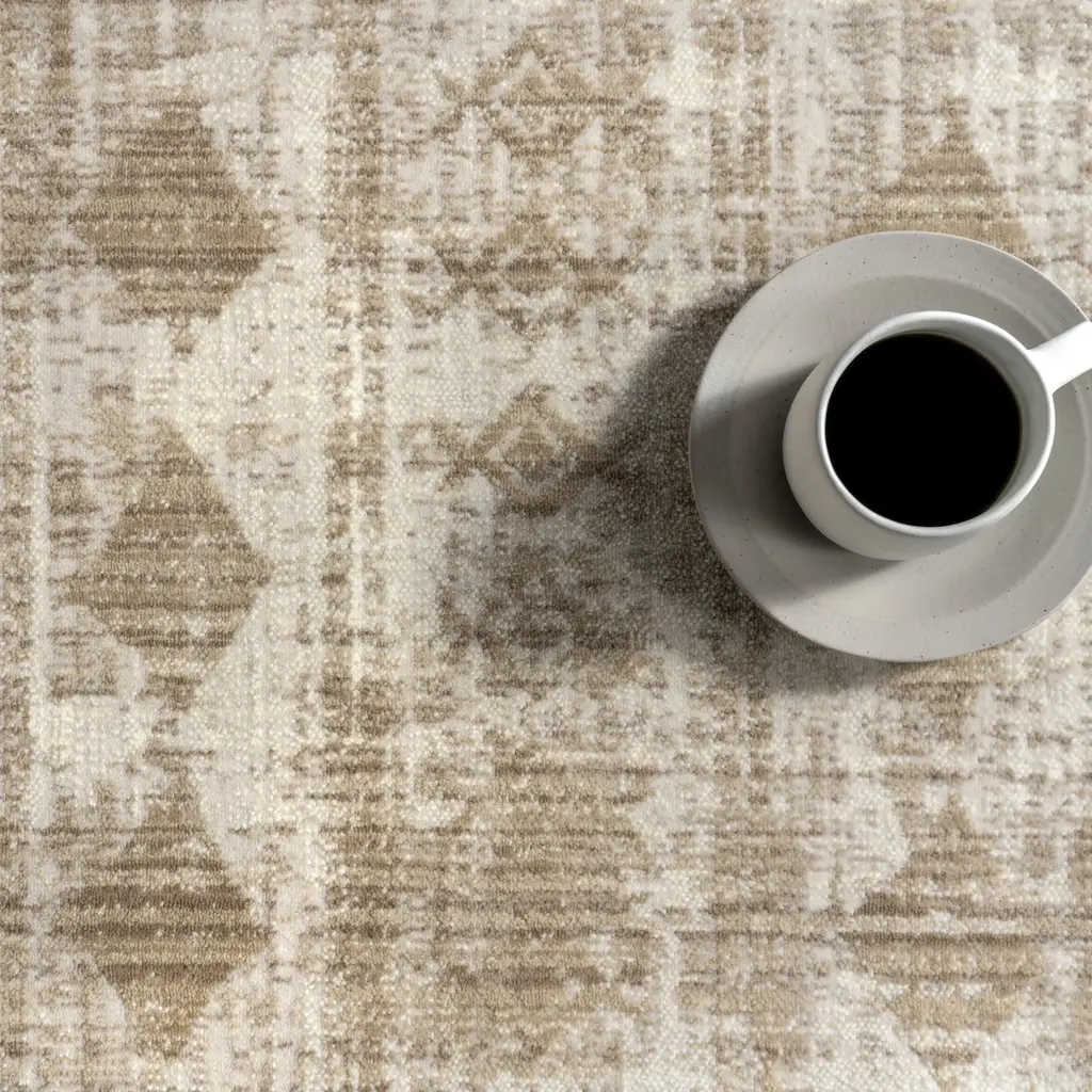 Saturdays Geometric Fringed Rug | Light Beige - 5' 3" X 7' 7"