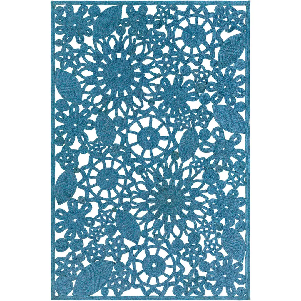 Collection: Sauquoit Colors: Blue Construction: Hand Woven Material: Face: 60% Polypropylene, 20% Polyester, 20% Viscose Pile: Medium Pile Pile Height: 0.3" Styles: Outdoor Outdoor Safe: Yes Made In: India Thickness: 0.24" Price Range: $$$$$ (Affordable)
