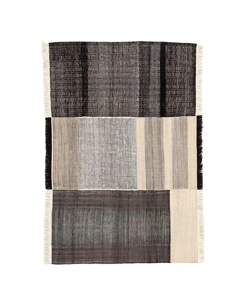 Our Savary Rug is made from a mix of jute and wool, natural materials known for their durability and beauty. Its asymmetrical gradient pattern brings a touch of understated sophistication to any space.