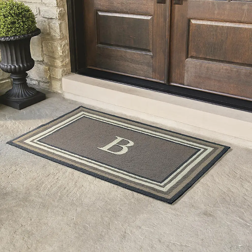 Welcome family members and guests alike with this classic gray monogrammed door mat. Hand-hooked of weather-resistant fiber, this mat has an eye-catching design that resists fading. Polyester and acrylic Color: Gray with neutral border colors Non-monogrammed option available Tufted Add an outdoor rug pad (sold separately) to increase water drainage and prevent slippingVacuum regularly and spot clean as needed Imported A Frontgate exclusive. At Frontgate, our primary focus is quality. We guarantee that every product we sell will stand up to the supreme test – our customers' satisfaction. To learn more about our policies, visit our Shipping & Processing, Returns & Exchanges and Warranty & Price Guarantee pages. Welcome family members and guests alike with this classic gray monogrammed door mat. Hand-hooked of weather-resistant fiber, this mat has an eye-catching design that resists fading. Polyester and acrylic Color: Gray with neutral border colors Non-monogrammed option available Tufted Add an outdoor rug pad (sold separately) to increase water drainage and prevent slippingVacuum regularly and spot clean as needed Imported A Frontgate exclusive. At Frontgate, our primary focus is quality. We guarantee that every product we sell will stand up to the supreme test – our customers' satisfaction. To learn more about our policies, visit our Shipping & Processing, Returns & Exchanges and Warranty & Price Guarantee pages.