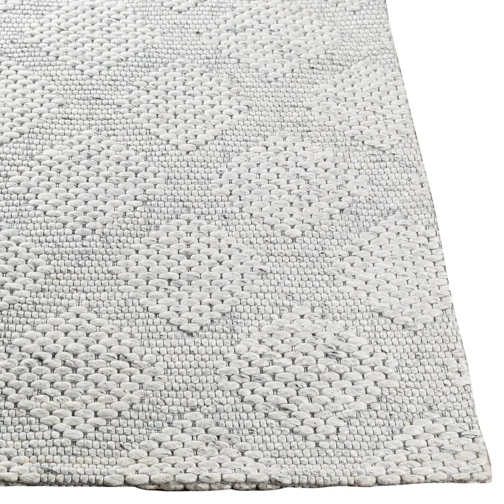 Indian artisans wove by hand the diamond motif within the denser weave of the ground, making this wool rug a bona fide work of art. A rug pad is recommended to prevent slipping and extend the life of the rug.