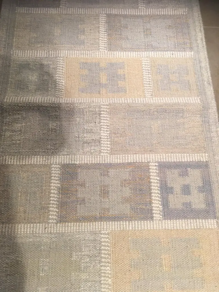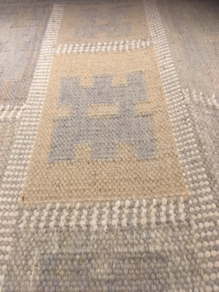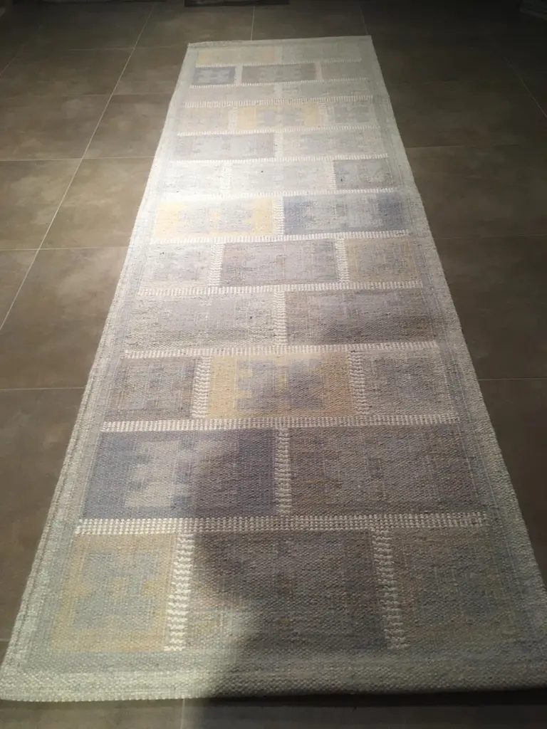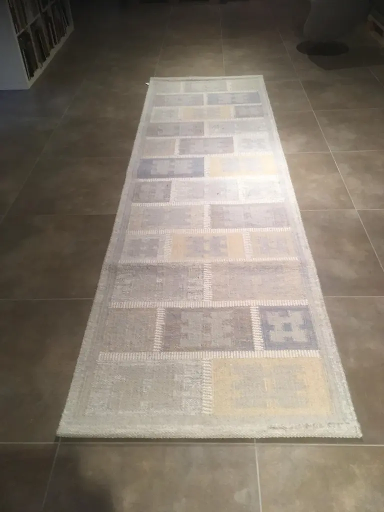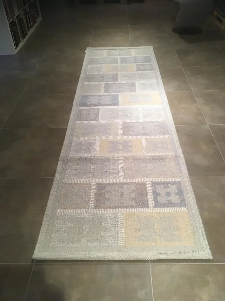Inspired by Mid-Century Modern Swedish carpets, this Kilim is part of our contemporary collection of textured flat-weaves where the material is employed in such a way as to create a sturdy rug that can be beautifully juxtaposed in today's interiors. This design is called 'Elsa', it is woven in wool and is available in standard as well as custom sizes.
