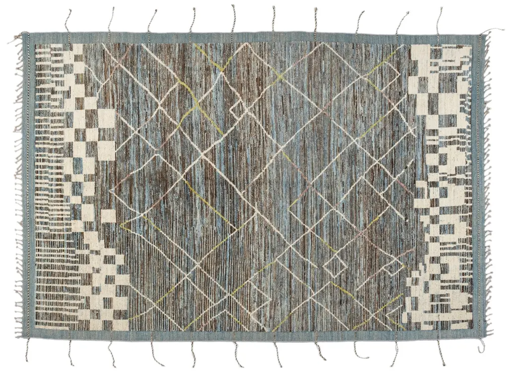 Made with handwoven wool, this rug is an exciting new addition to Rug & Kilim’s Scandinavian rug collection—a contemporary reimagining of Swedish minimalism and vintage rugs and textiles of Rollakan and Rya traditions.On the Design: The structured checkerboard design of this Swedish flatweave, composed of alternating blocks of slate blue, charcoal, and dove grey, exudes a sense of order, calm, and continuity—qualities central to the region’s postwar design philosophy. Each square is subtly unique in texture and hue, a testament to its handwoven nature. The fine stepped borders and rhythmic linework offer visual interest while retaining an overall sense of restraint. The outer border, constructed with small repeating motifs, resembles a pixelated folk embroidery pattern—a nod to Swedish textile heritage.Admirers of the craft will appreciate this proprietary technique of ours that both innovates and honors mid-century weaving techniques inherent to Scandinavian style. Our modern flat weave further enjoys our reputed, heavier body with buckle resistance and greater durability against foot traffic. Overall, it makes for a comfortable, sophisticated contribution to the Swedish aesthetic that both innovates and honors the spirit of mid-century Scandinavian rugs.Custom Projects:The pricing for our rugs is calculated on a per-square-foot basis and applies to the standard sizes noted. Custom sizes and colors are offered; please contact your dedicated liaison to obtain a formal quote. Expedited lead times are available upon request.