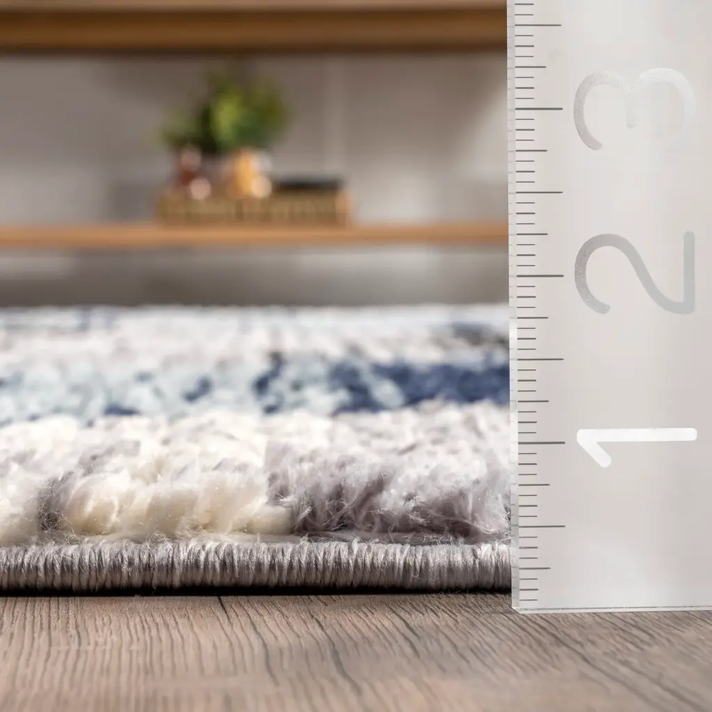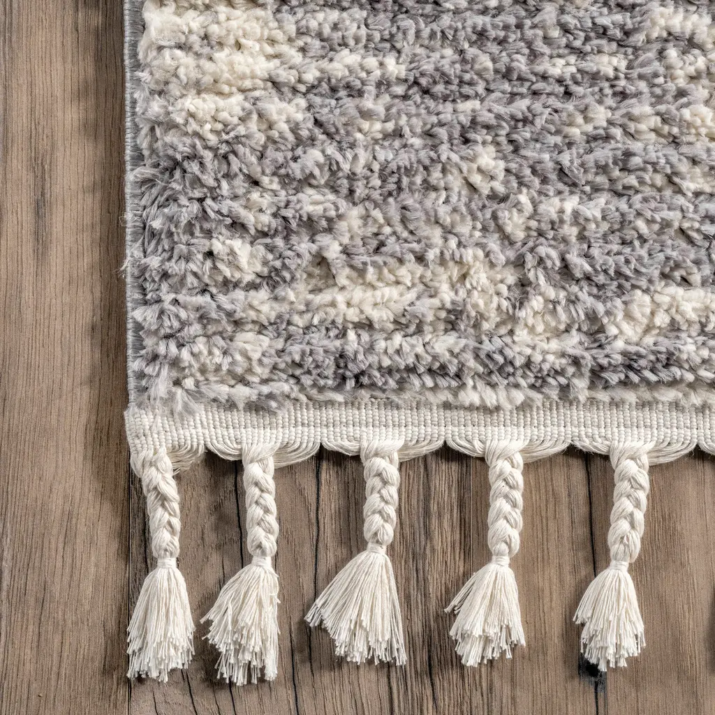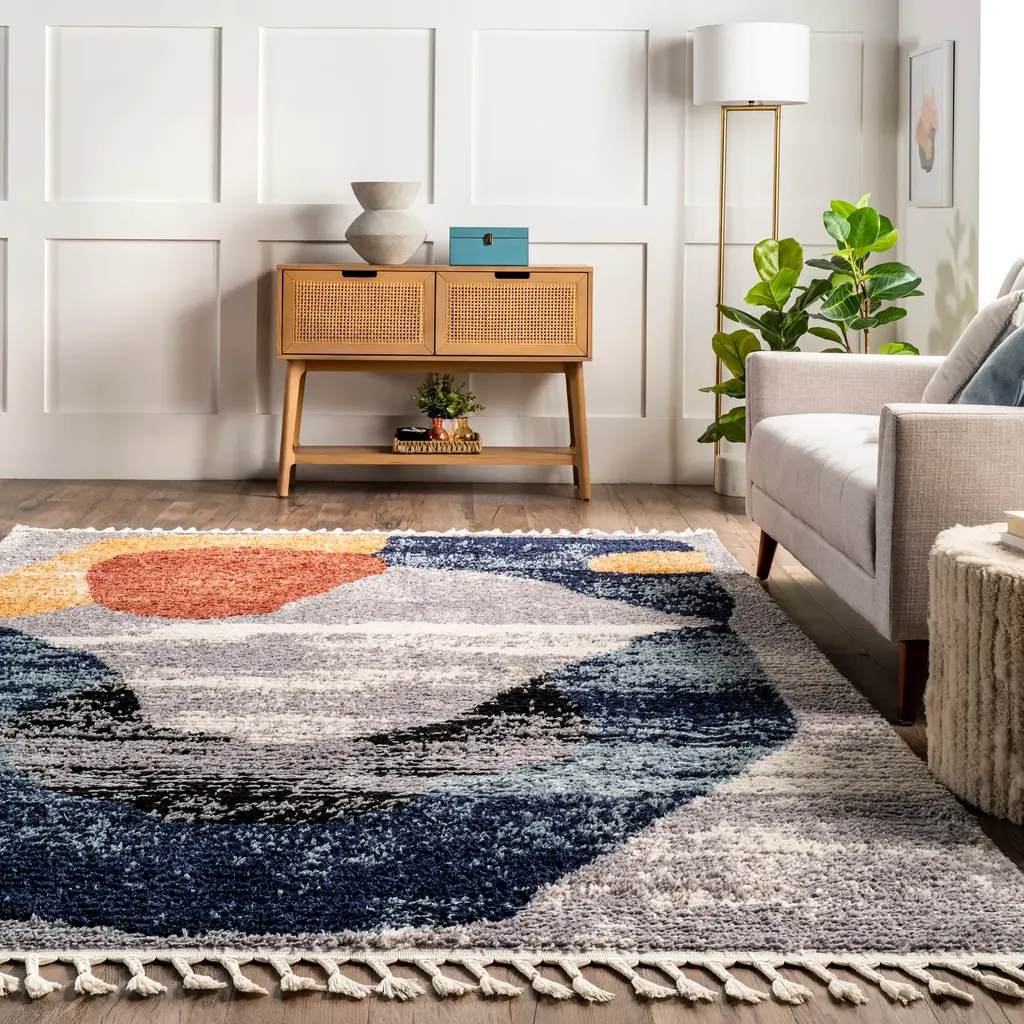 Deep ocean blues, warm greys, bold colors against a neutral background combined with a faded look, make this floor covering unlike any other. Braided tassels around the border add a fresh, modern element while a stunning pattern captures the attention of anyone who sets foot on it! Kick those feet up and get ready to relax with our pet-friendly and easy to clean area rugs.