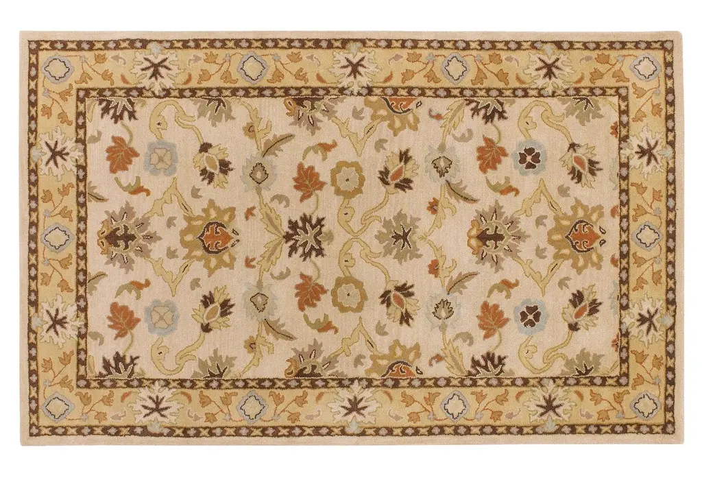 An open, neutral palette lends itself perfectly to this modern interpretation of classic motifs. Crafted from hand-tufted wool.