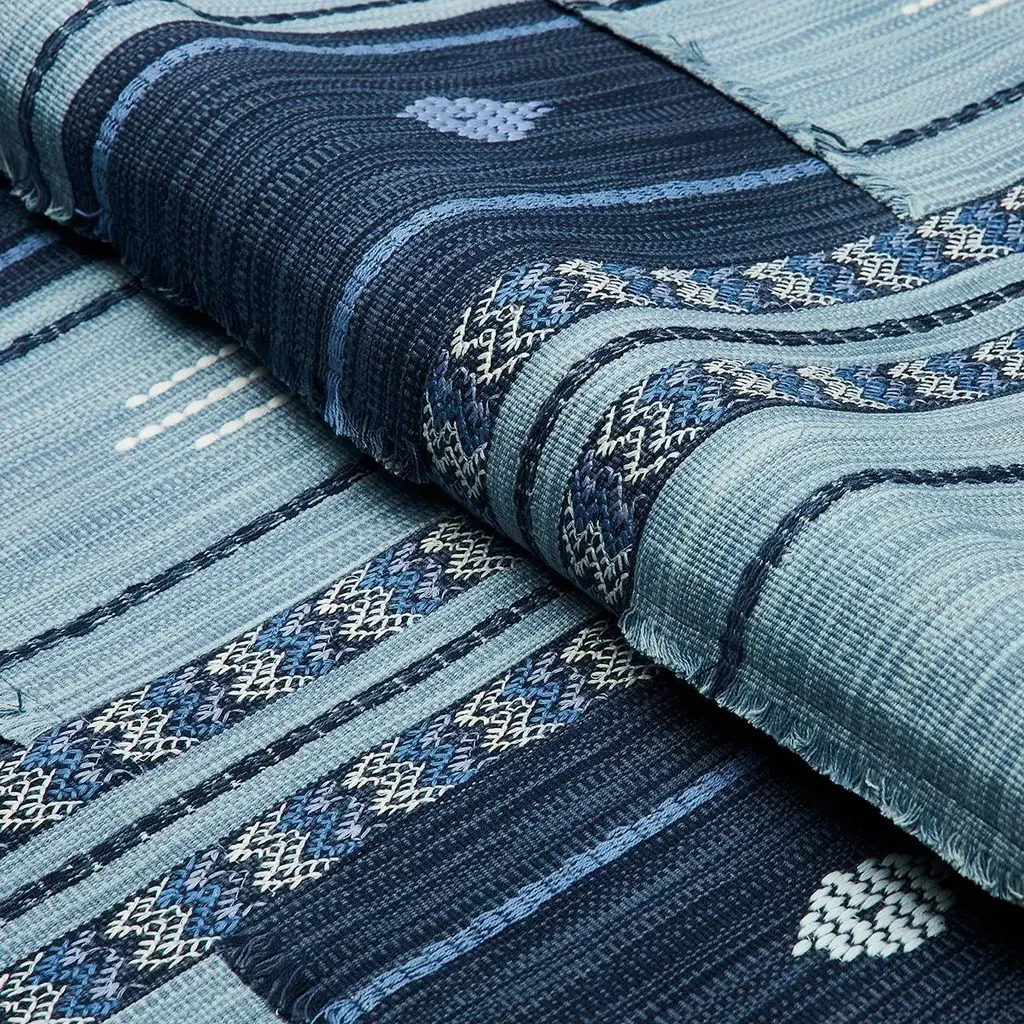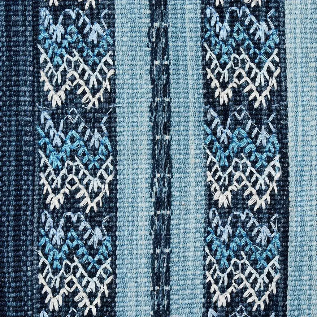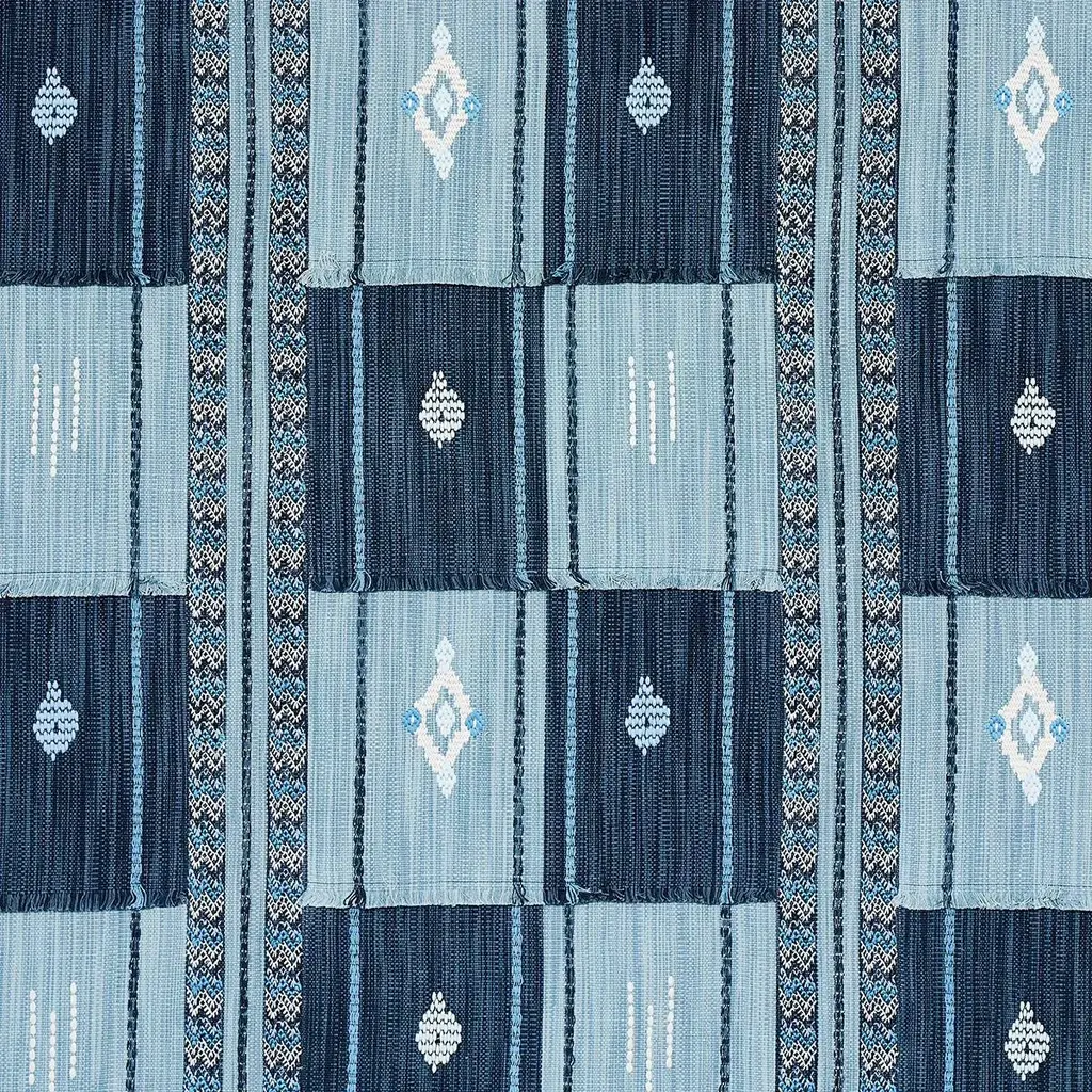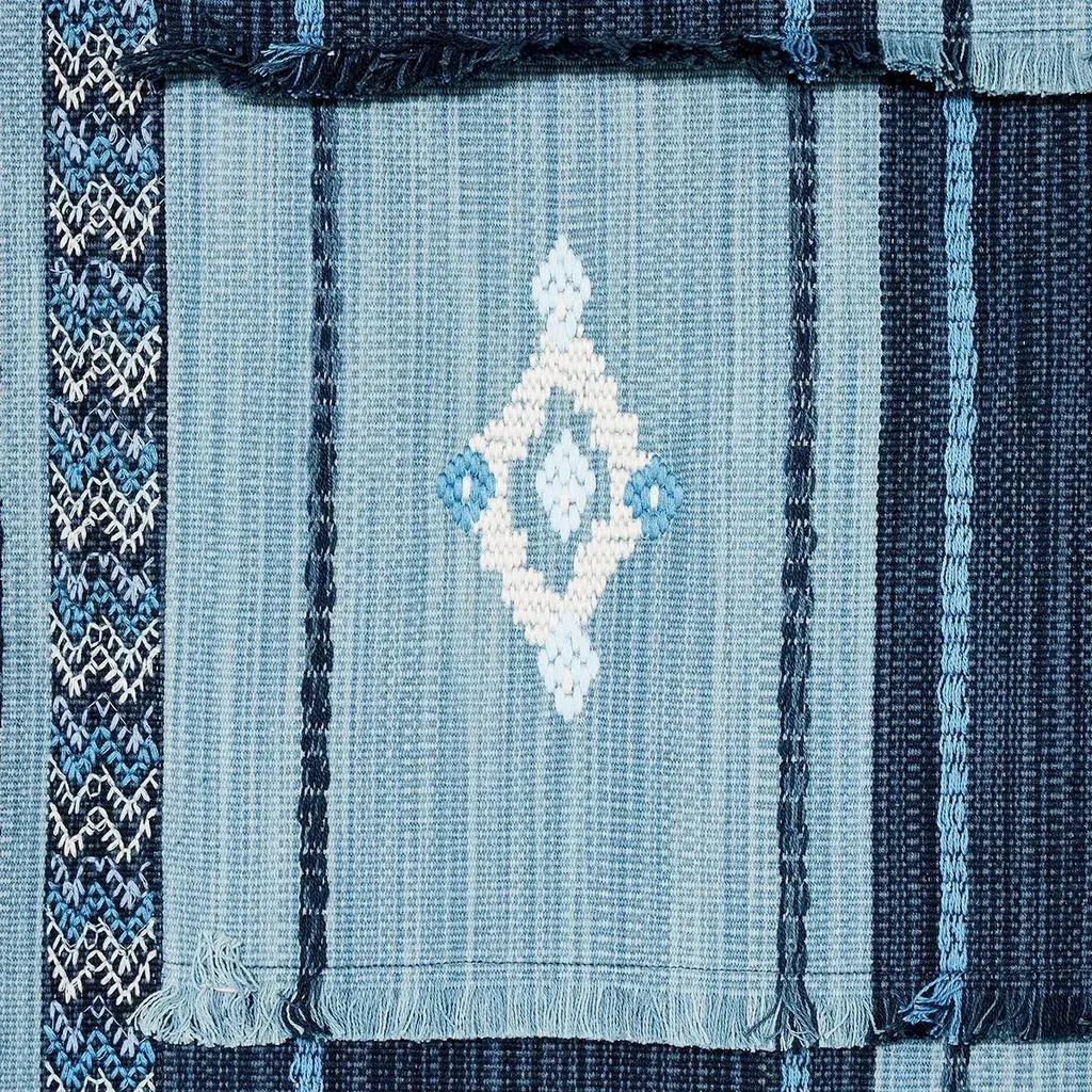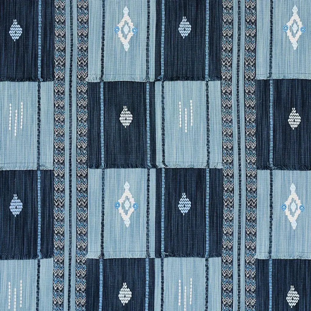 Inspired by the rich colors and tribal symbols associated with Berber rugs, Aravali Patchwork in denim-and-indigo is a woven geometric design that combines checks, stripes and delicate embroidered motifs. Made of hand-dyed cotton yarns, it has a wonderful strié effect and a patchwork construction that enhances the textural look of this unique upholstery-weight fabric. Care Instructions: DRY CLEAN RECOMMENDED