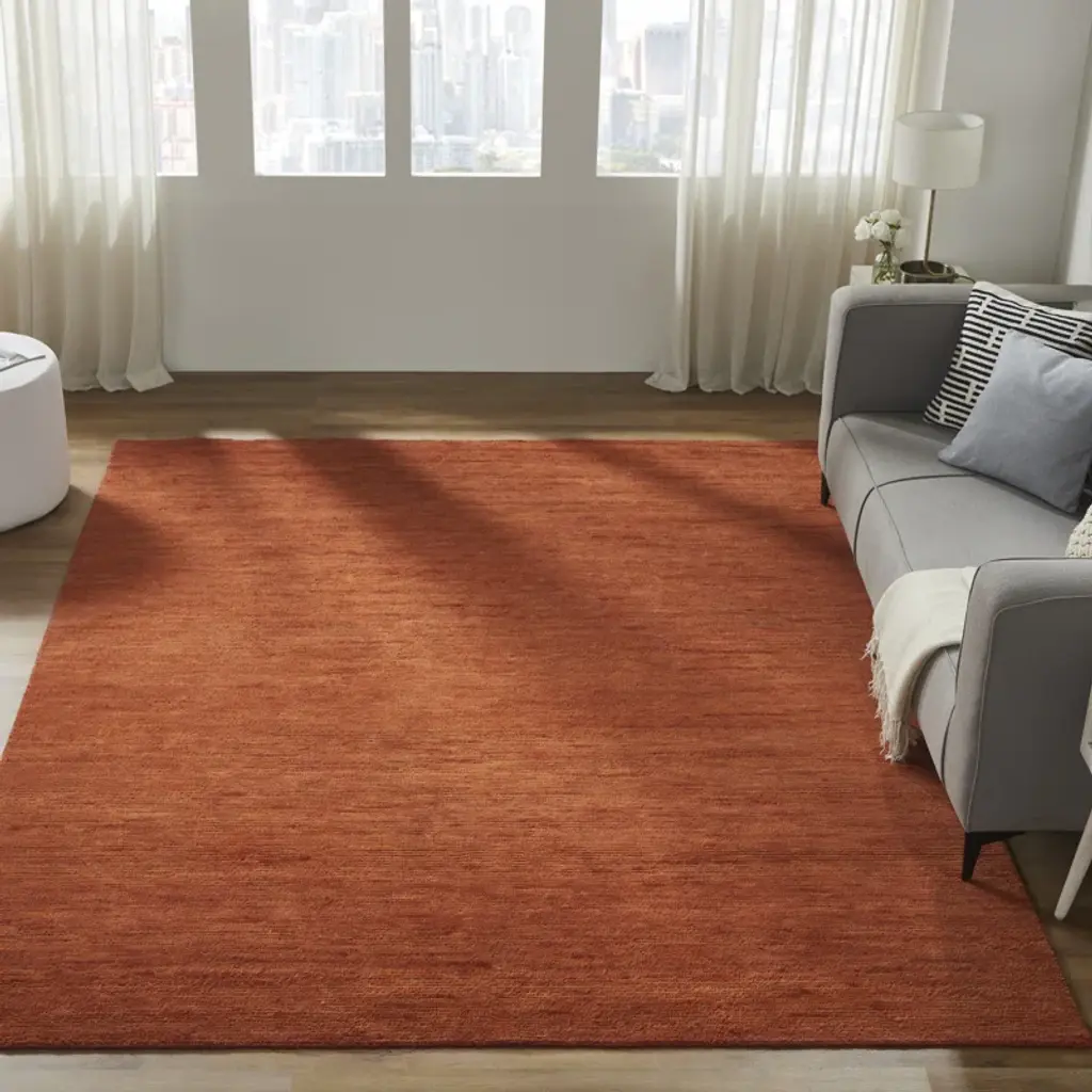 Inspired by the fiery glow of a setting sun, the Schwenzer Sunset Ember Hand-Knotted Wool Area Rug is a warm and inviting addition to any home. Its deep burnt-orange hue radiates a sense of comfort and timeless sophistication, making it an ideal centerpiece for a cozy and stylish interior. The subtle variations in tone, achieved through the hand-knotting process, add a touch of depth and dimension to the design. Whether complementing a minimalist aesthetic or adding warmth to a bohemian space, this rug exudes effortless elegance and charm.