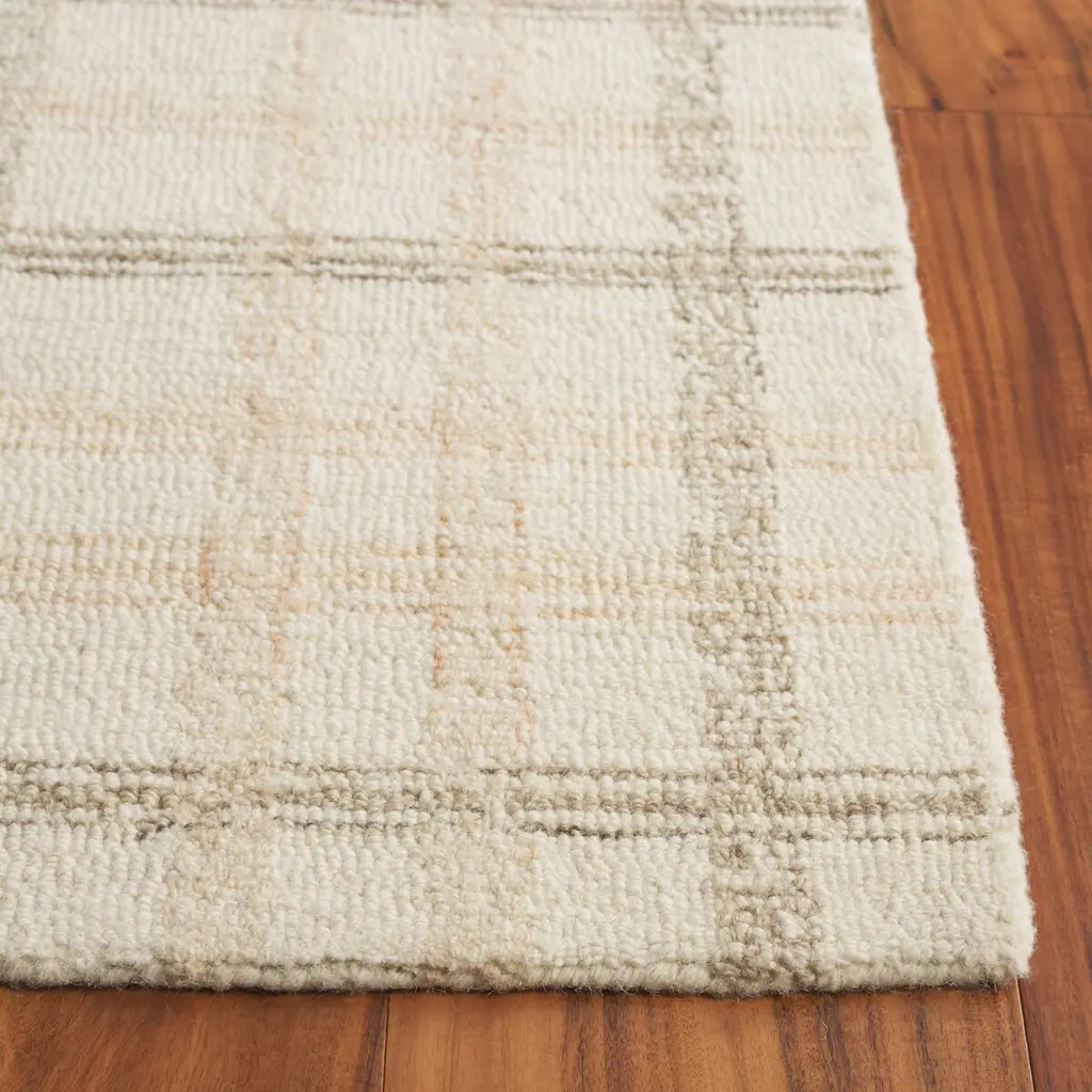 Introducing our exquisite 4' X 6' area rug, a perfect blend of sophistication and craftsmanship. With its serene sage and ivory tones, this small rectangle rug infuses a touch of elegance into any room. The modern style of the rug is accentuated by its charming geometric pattern, displaying an array of beautifully spaced lines that create a harmonious grid design. This provides a subtle yet impactful aesthetic that can complement various decors. The height of the rug stands at a comfortable 3/8 inch, offering a plush underfoot experience without being overly thick. Each rug is meticulously hand-tufted, a testament to the artistry and tradition it carries from its origins in India. Crafted from a blend of 85% wool and 15% cotton, the rug promises durability, a soft feel, and a natural ability to withstand high foot traffic, making it a practical choice for both private and communal spaces. Whether you're looking to dress up your living room, bedroom, or office, this rug's inviting palette and refined appearance are sure to enrich your living space.