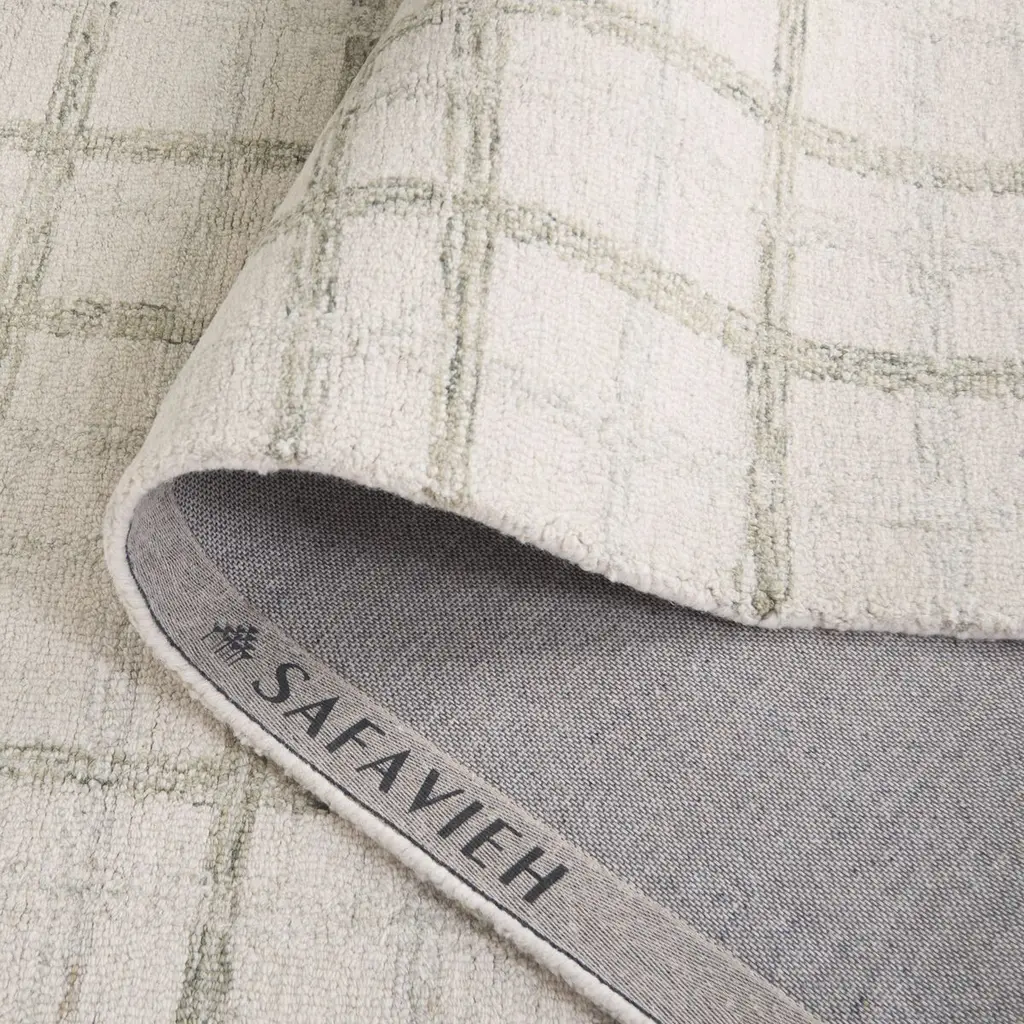 Introducing our exquisite 4' X 6' area rug, a perfect blend of sophistication and craftsmanship. With its serene sage and ivory tones, this small rectangle rug infuses a touch of elegance into any room. The modern style of the rug is accentuated by its charming geometric pattern, displaying an array of beautifully spaced lines that create a harmonious grid design. This provides a subtle yet impactful aesthetic that can complement various decors. The height of the rug stands at a comfortable 3/8 inch, offering a plush underfoot experience without being overly thick. Each rug is meticulously hand-tufted, a testament to the artistry and tradition it carries from its origins in India. Crafted from a blend of 85% wool and 15% cotton, the rug promises durability, a soft feel, and a natural ability to withstand high foot traffic, making it a practical choice for both private and communal spaces. Whether you're looking to dress up your living room, bedroom, or office, this rug's inviting palette and refined appearance are sure to enrich your living space.
