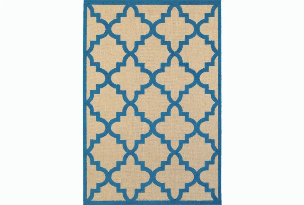 Sea Cottage Indoor Outdoor Rug Cream & Blue 4'x6'