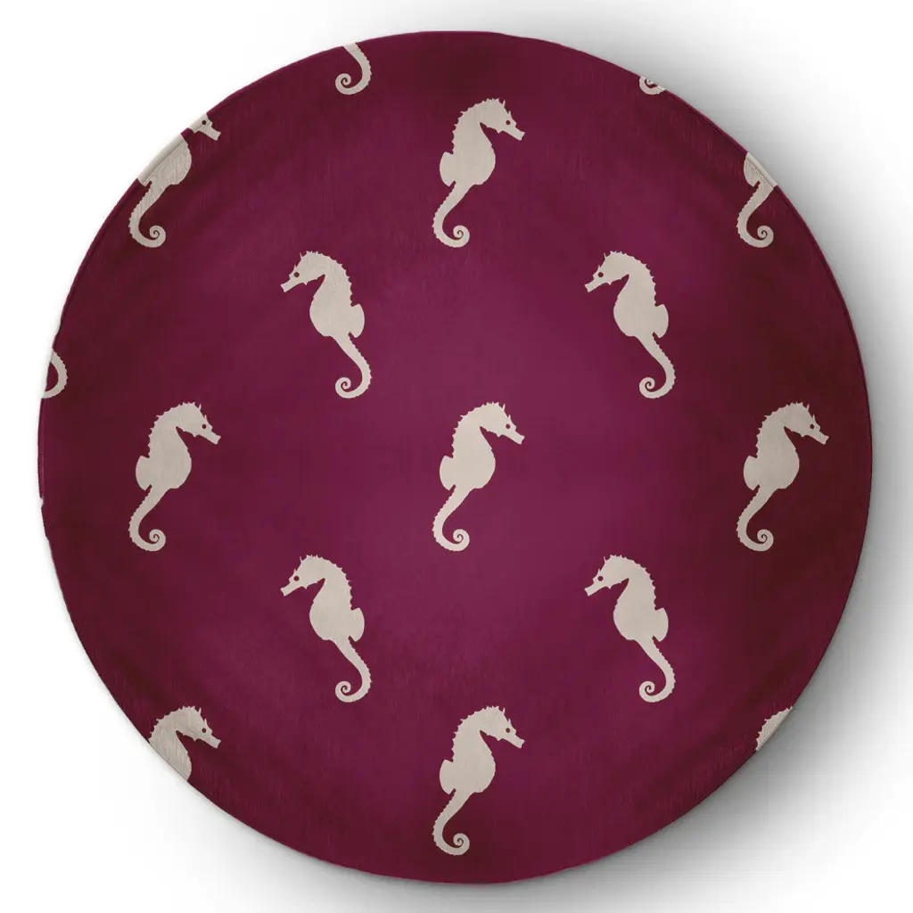 Sea Horses Nautical & Coastal Chenille Area Rug, Maroon Red, 4'x6'