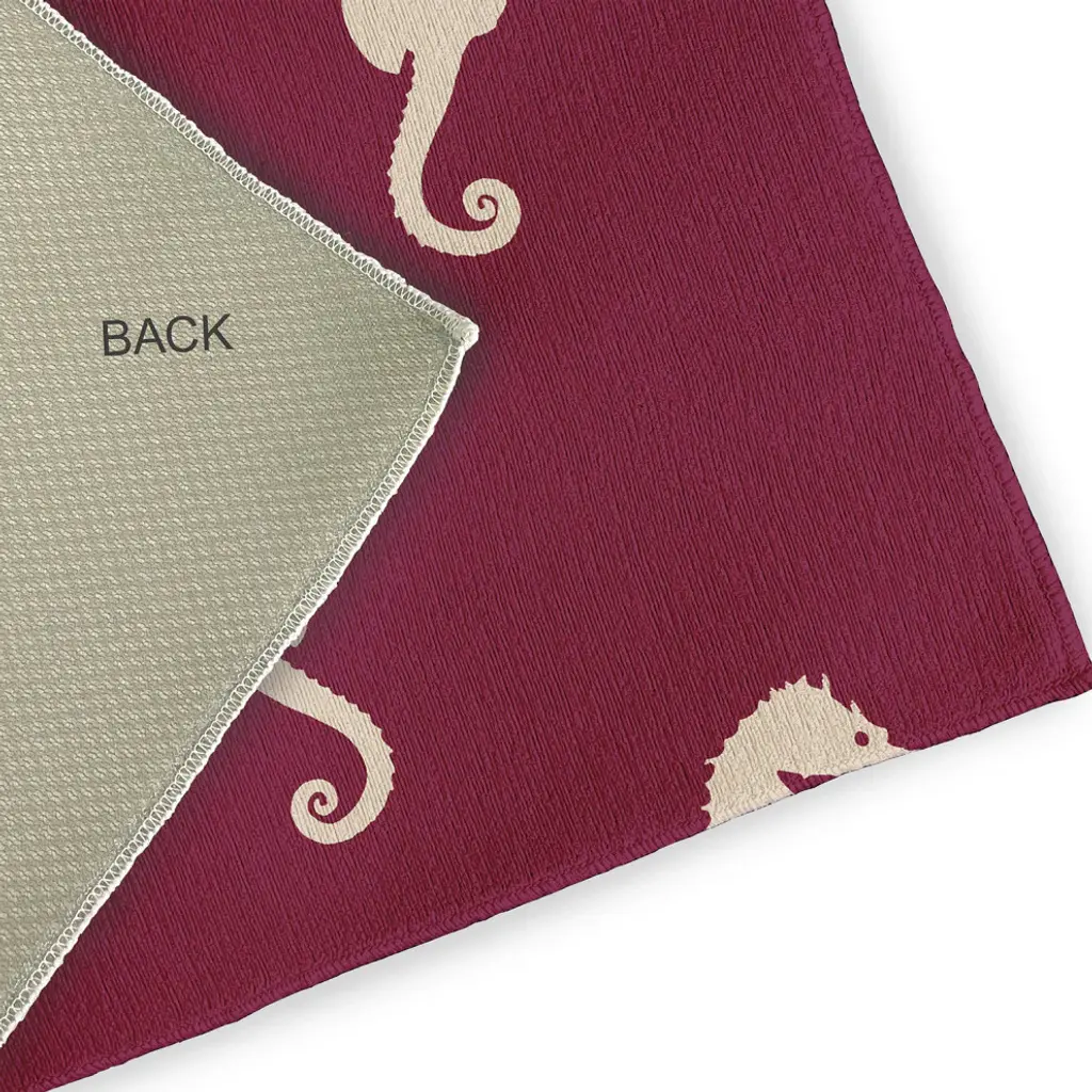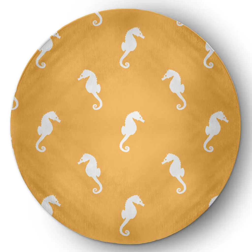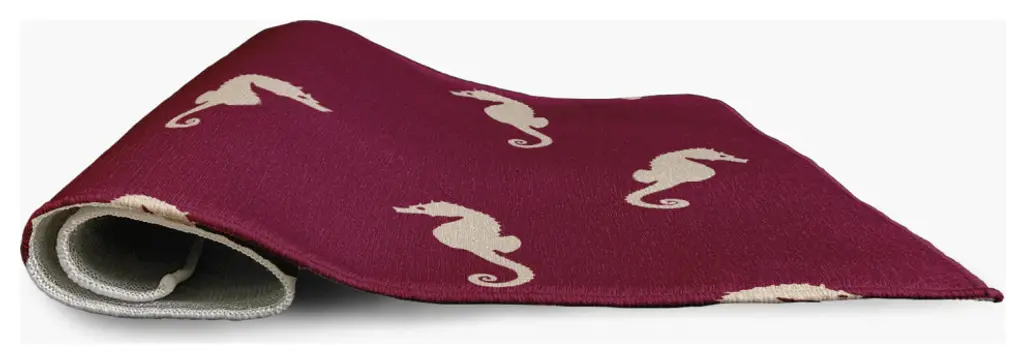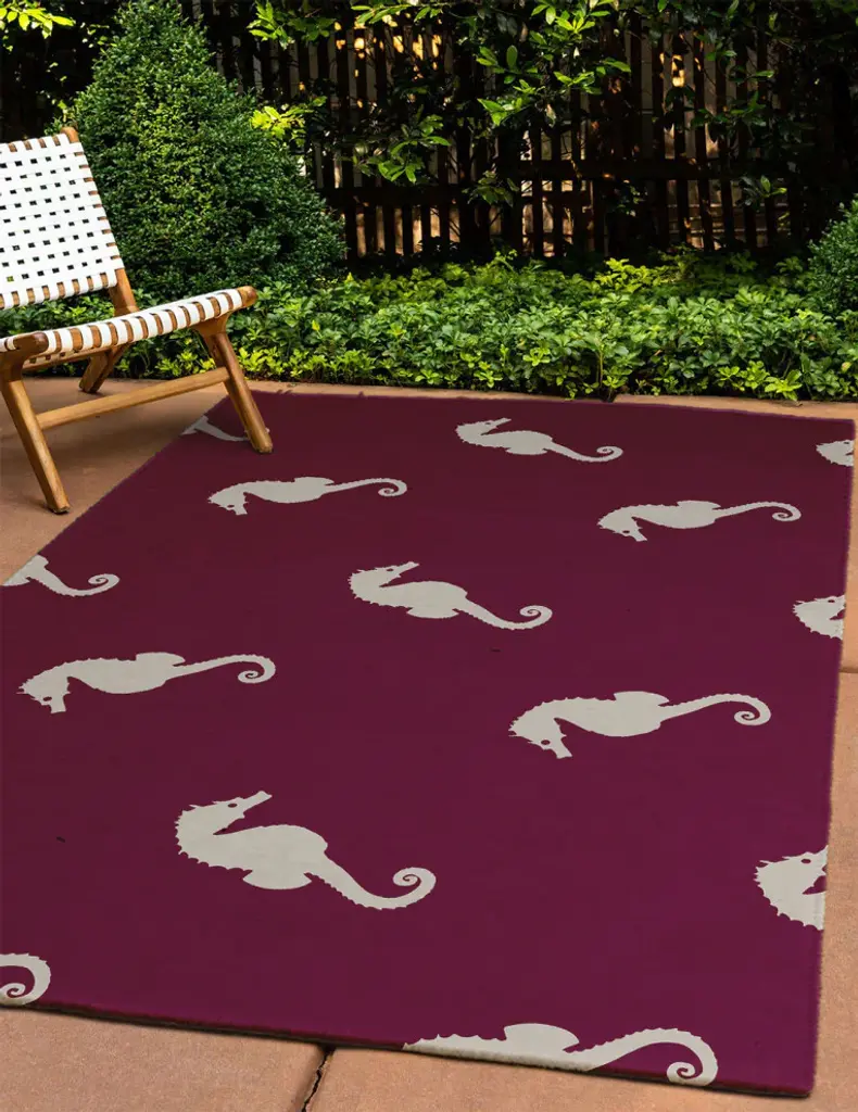 Bring the Seaside to your home decor with the Sea Horses Indoor/outdoor Rug from our Nautical Nights Collection. Everyone will delight in the space defining design brought to your porch, patio, kitchen, or bathroom by this area rug. The artistic and colorful design is printed on a soft polyester base with a skid resistant backing, making it a perfect way to add color, flare and personality to any indoor or outdoor space. To clean, use a mild soap and lay flat to dry.