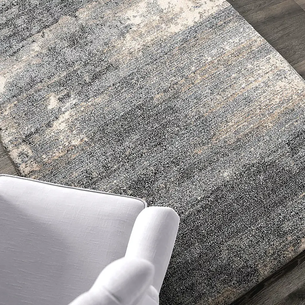 With an abstract pattern evocative of open air meeting rough waters, the Sea Sky rug commands an utterly captivating presence. Made with soft fabric in a variety of beige and gray colors, this rug features a thick plush quality and is highly durable. 100% Polypropylene