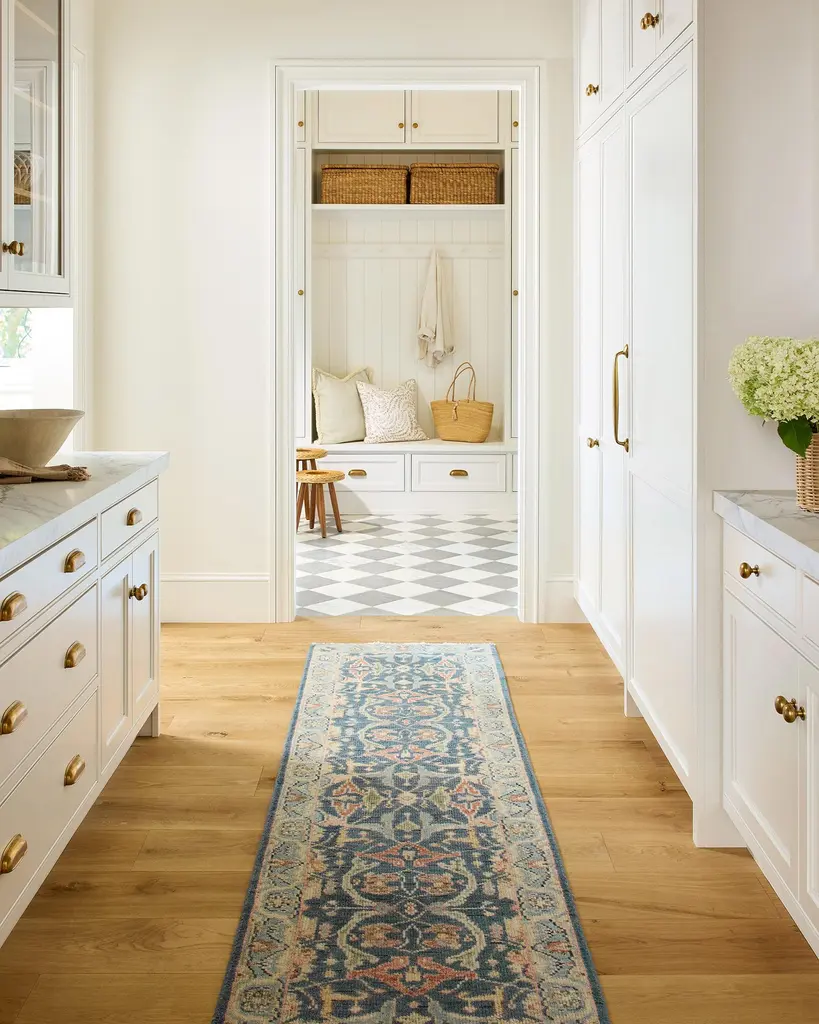 A colorful canvas handknotted of plush, premium wool. Bold, saturated hues and cream-colored fringe. Gorgeously grounding.