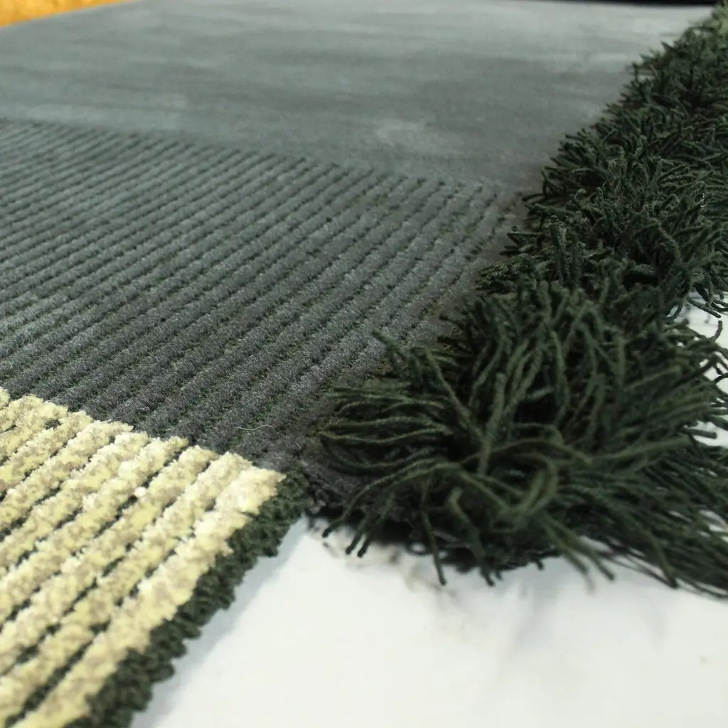 Designed by Studio Solaris, this unique rug is part of the Selce Collection, inspired by the irregular silhouette of flint ("selce" in Italian). Entirely crafted by hand using a combination of Tencel, linen, Hardtwist, and New Zealand virgin wool, and a mix of bouclè, relief, shaggy, and velvet for a multi-faceted surface, this decorative piece is an exquisite piece of functional modern art.