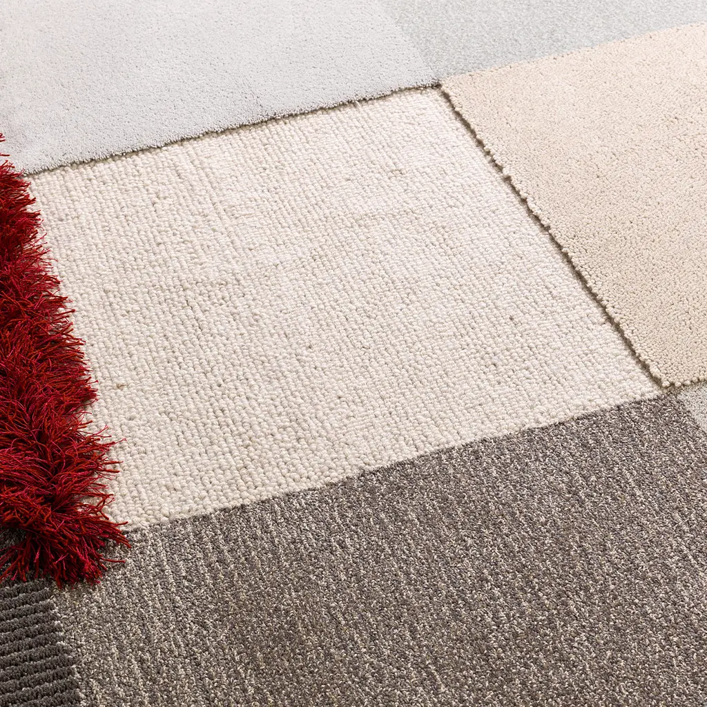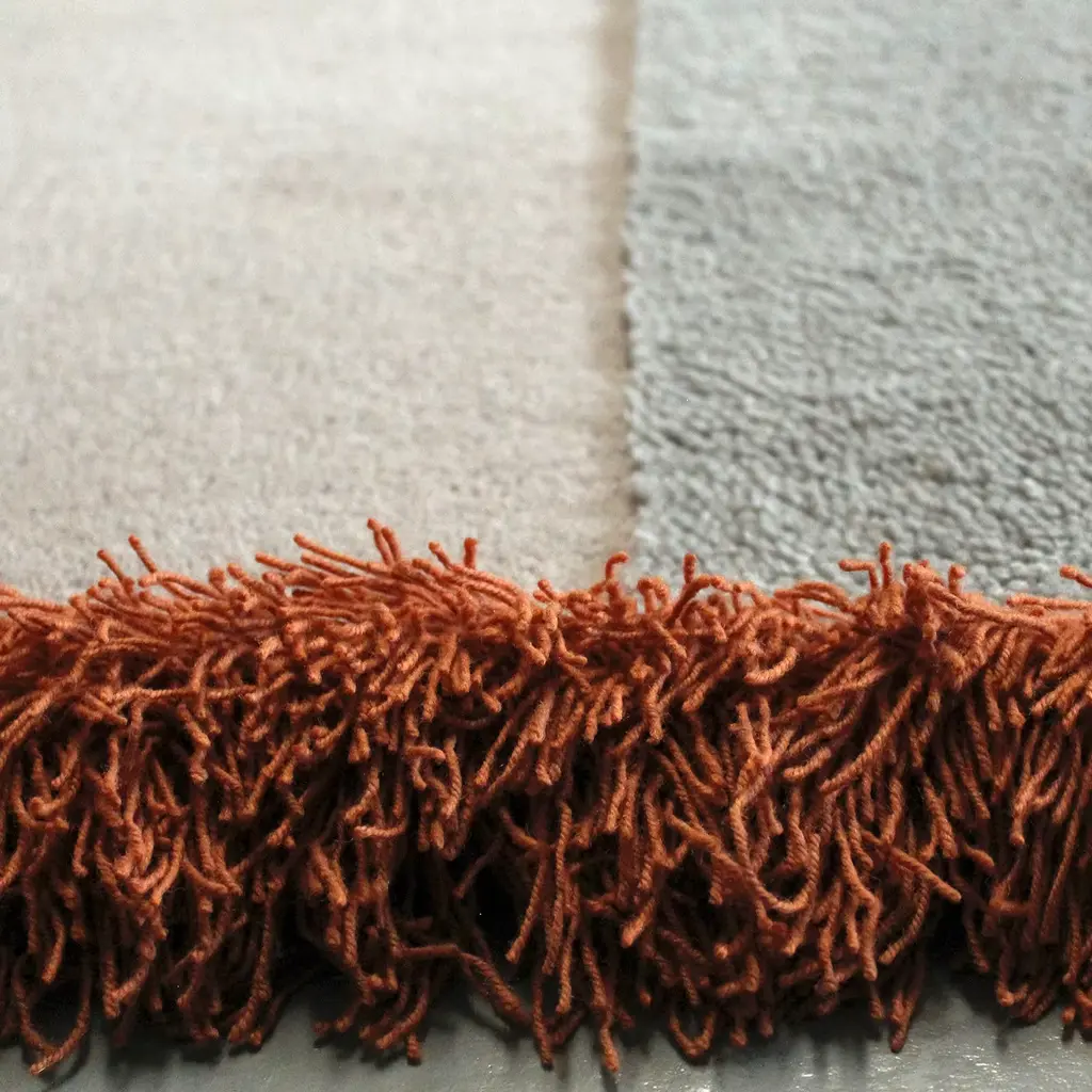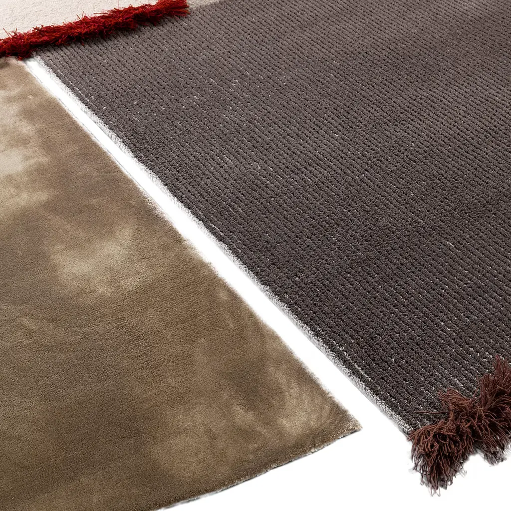 In a striking juxtaposition of textures, this asymmetrical rug is a stunning floor decoration that combines neutral, gray hues with accents in vibrant red and orange. This exquisite piece is part of the Selce Collection by Studio Solaris and made entirely by hand using Tencel, linen, felted wool, and New Zealand virgin wool. Enticing to the touch, this piece mixes the bouclè, velvet, relief, and shaggy surfaces and can be made to order in different sizes upon request: 170 x 240 cm/66,63 x 94,49 in; 200 x 280 cm/78,74 x 110,24 in. Please ask the Concierge for details.