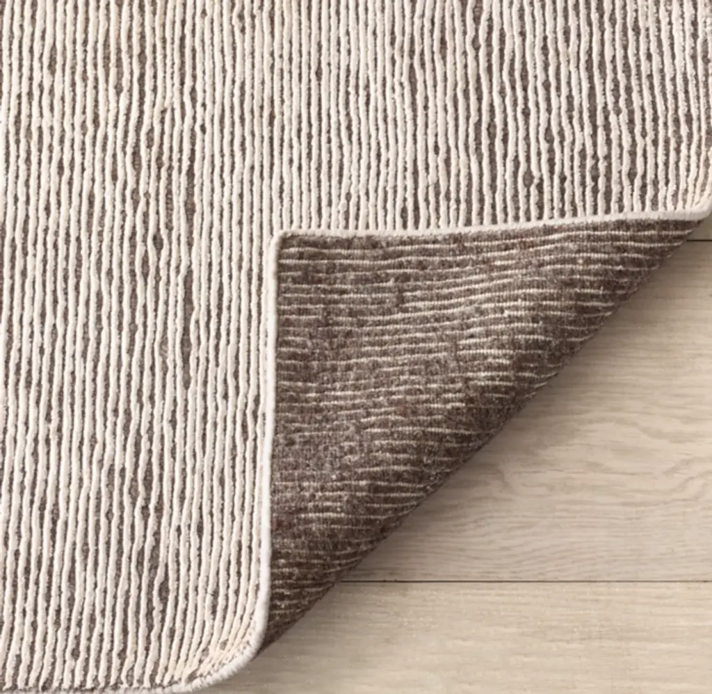 Hand knotted from silk and New Zealand wool, Selene's sheared loops reveal the rug's soft pile and luminous patina. Undyed yarns result in an abrash, striated palette that adds one-of-a-kind character to each rug.