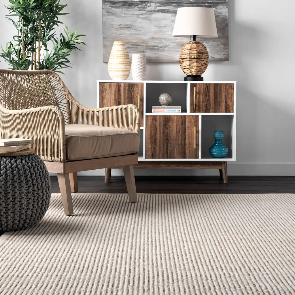 Simple, but never boring–if the Patricia Rug had a motto, that would be it. This piece is designed to be a staple in any home. Its natural aesthetic and crisp white border highlight the designer and content creator’s minimalistic style. Made of some most-loved materials, its quality is impressive, too.