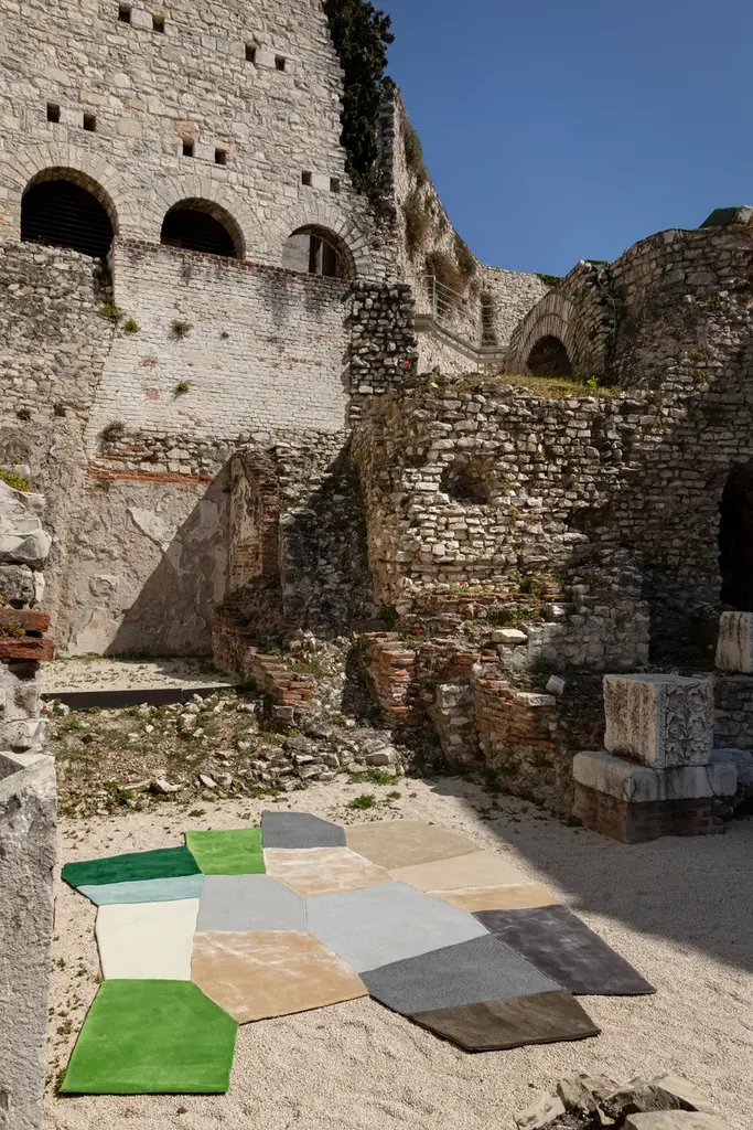 SENTIERO DI SALMAN is a handtufted by expert craftsmen, it is entirely composed of New Zealand Wool, Hardtwist and Tencel. Designed by AMDL CIRCLE, it is ispired by the Cuzco walls and the opus of Roman construction. It belongs to the class Cfl-s1 fire retardant. It can be customized in sizes and colors.Sentieri is a collection that draws inspiration from the Cuzco walls and the opus of Roman construction, interpreting the pathway as a metaphor for life itself. In New Zealand Wool, Hardtwist and Tencel, its modular structure, based on the combination of six irregularly shaped polygons allows for infinite combinations of color and form that can be configured on a dedicated digital platform.