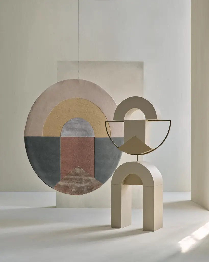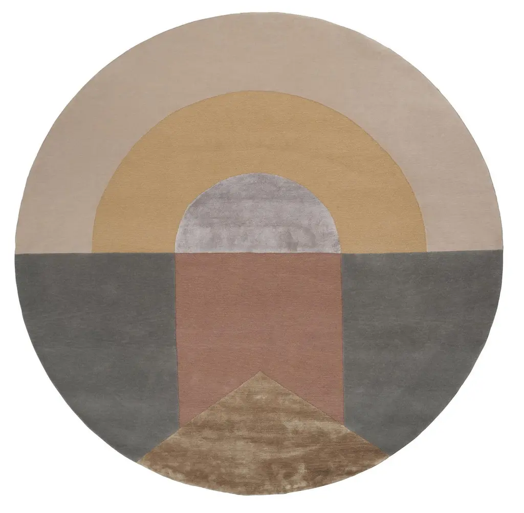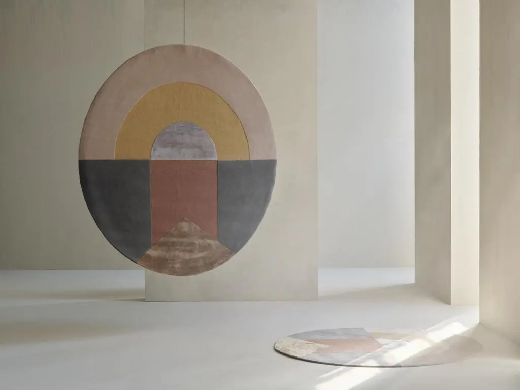 Seraphic Sun, 'Dimensuous' collection, by Linie DesignCircular handmade rug. Wool and silk, hand knotted.Two sizes available: 200cm or 250cmAn artistic and visually alluring hand-knotted rug from Linie Design. Eternal Orb uses contrasting colours and shapes to create an intricate design replicated in thousands of tiny knots. Using only natural, sustainable fibres, the rug is crafted in a luxurious blend of RWS wool and silk with an organic cotton warp, which enhances the colours, texture and sheen, while ensuring natural warmth, strength and durability. Hand-knotted by Linie Design’s artisan weavers, designed by Urd Moll Gundermann.