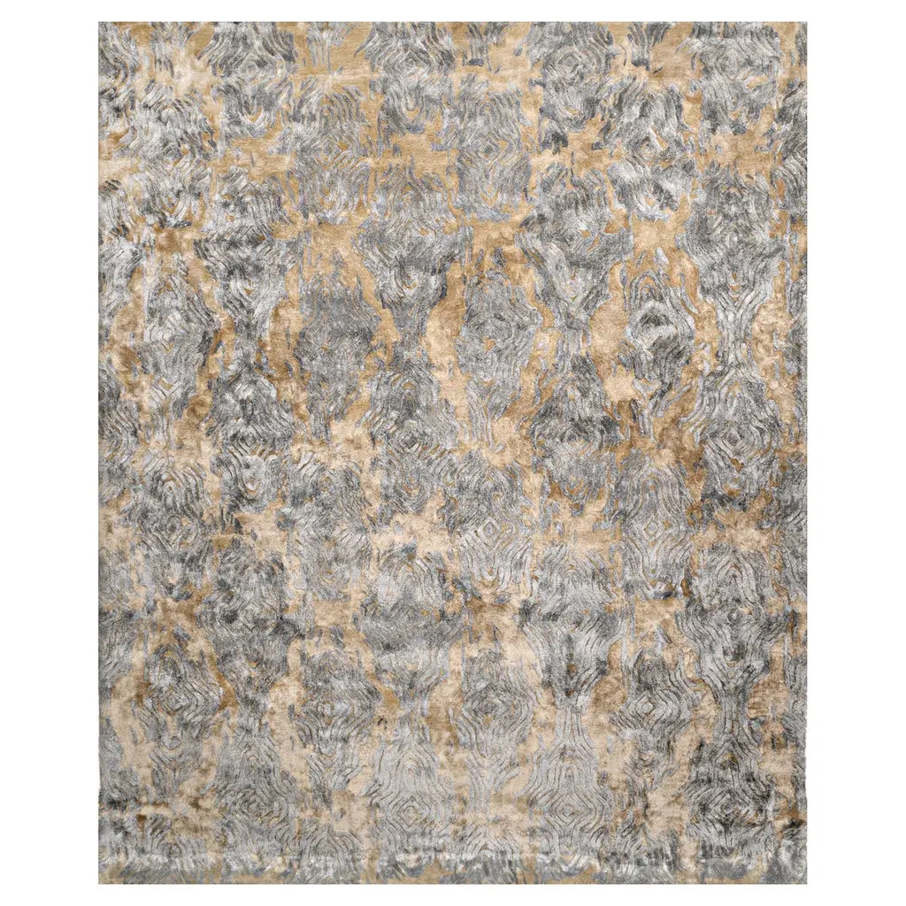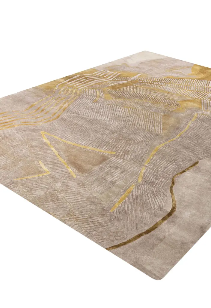 Serene Hand Tufted Modern Silk Rug In Grey Gold & Grey Blue Colours By Hands
