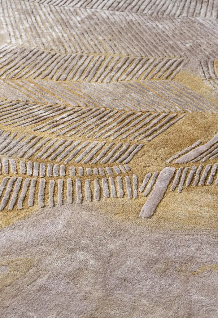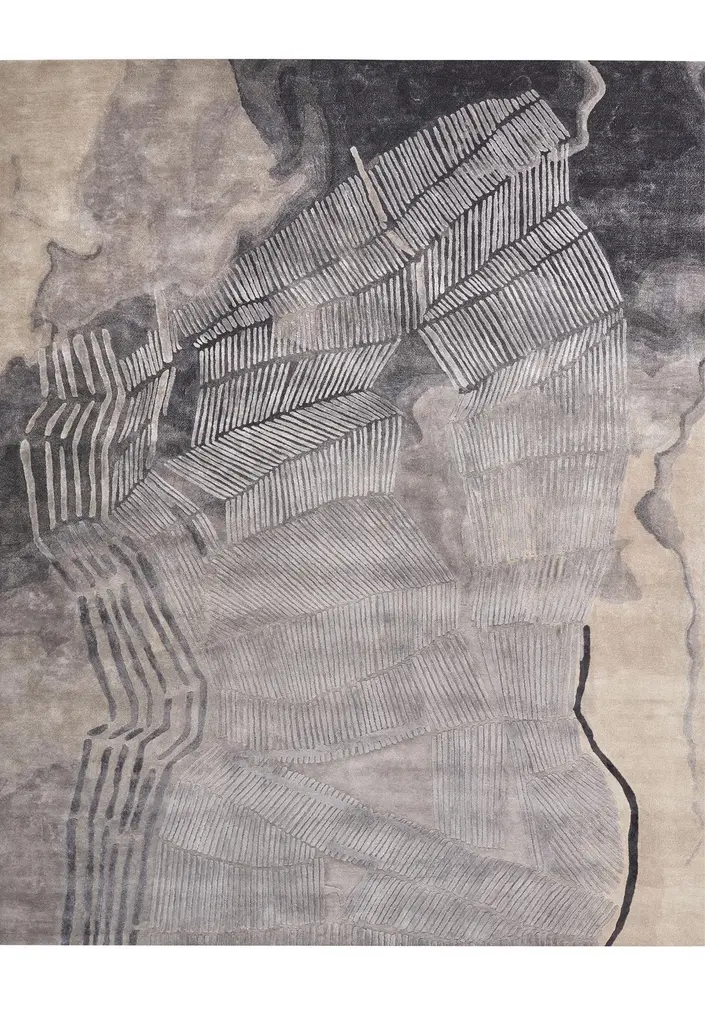 In circa 100,000 B.C. Africa, an early human makes a marking on a rock with ground red ochre, which goes on to become the first human artistic representation in documented history. Tens of thousands of years later, a Neanderthal makes a red hand stencil in a cave in Spain, which is the oldest known cave painting today. And now in the 21st century, somewhere in the virtual world, an artist is pushing the boundaries of visual storytelling by employing generative AI. While tools, technology, and our very intellect may have evolved over millennia, what has remained ever so constant since the dawn of humankind is the singular, primal instinct to express oneself through art. INSTINCT is a collection inspired by the joy of unrestrained, intuitive expression, featuring ten distinct carpet designs hand tufted in the finest botanical silk and wool. From soft, flowing patterns to sharp, angular lines, the design of each carpet is crafted to evoke a powerful emotional response.Serene, a carpet reminiscent of an intricately woven spider web, inspires an ambiance of meditative calm and oneness.Available in Colors Grey Gold & Grey Blue in different sizes : 90 x 150 cm - $724140 x 200 cm - $1,413170 x 245 cm - $2,124180 x 275 cm - $2,607245 x 305 cm - $3,861275 x 365 cm - $5,214305 x 425 cm - $6,759.