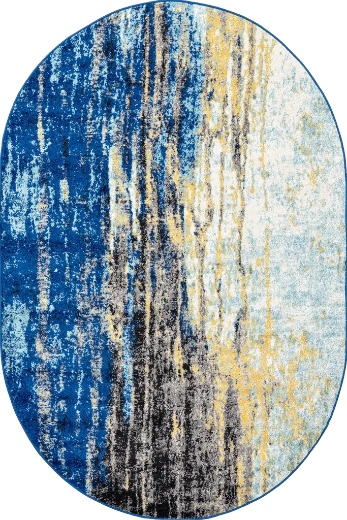 Embrace the serenity and beautiful charm of this waterfall area rug. With beautiful colors from bold dark blues to calming creams, this rug is easy on pile, thickness and has a teal border trim that compliments the colors of the rug. Set your living space apart with the powers of this stunning design. Available in an array of colors and sizes. Elevate your living space with our pet-friendly and easy to clean rugs.