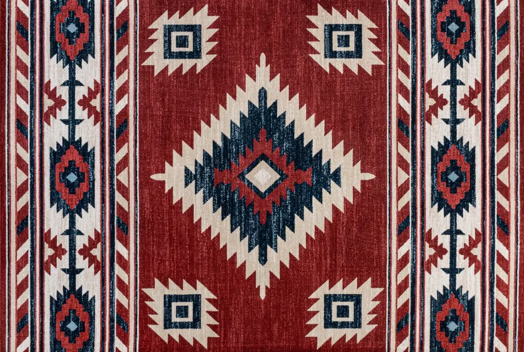Textiles woven by the indigenous people of the Southwest inspired this rug's bold motif. Made of polypropylene, the rug is suitable for use outdoor as well as inside, and you can clean it simply by hosing it down. A rug pad is recommended to help prevent slipping and extend the life of the rug.