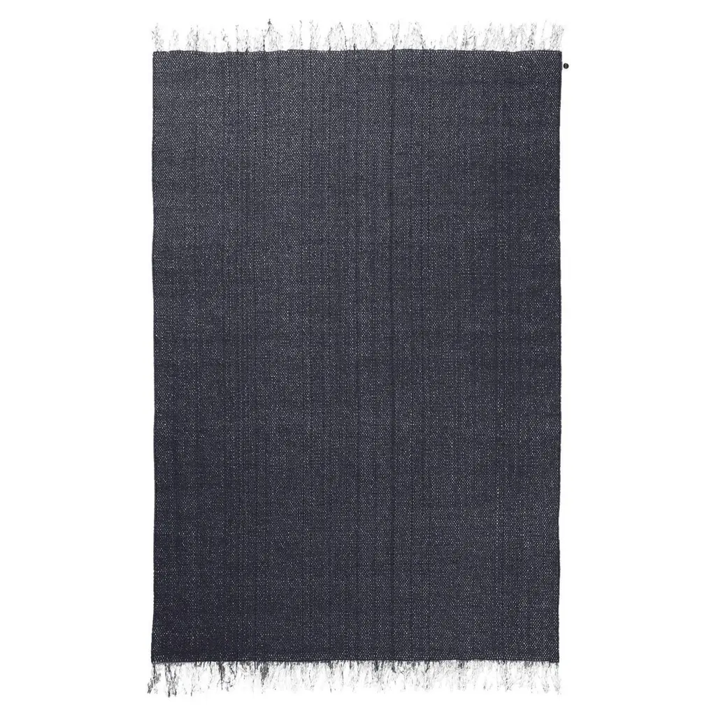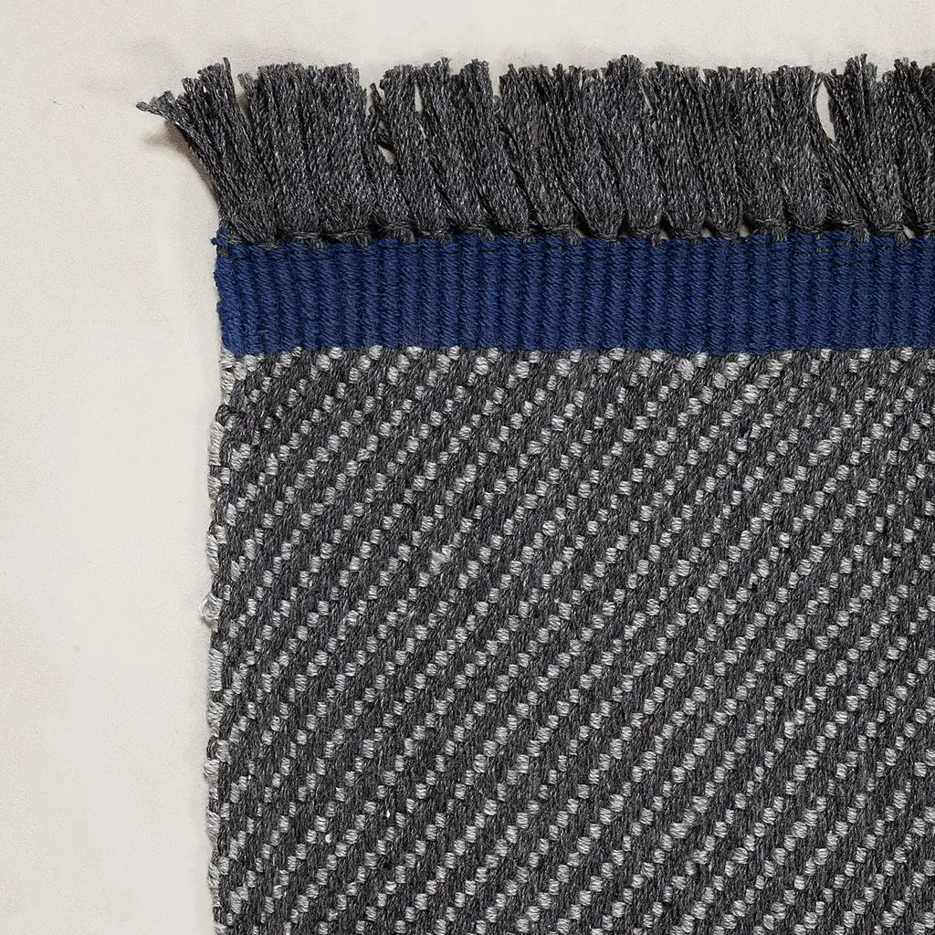 Designed with mélange tones and a diagonal weave, this rug combines textural depth with a refined charcoal base. The deep black fibers are subtly contrasted by neat blue bands, enhancing its structured aesthetic. Made from 100% recycled PET, it delivers durability, sustainability, and timeless sophistication, making it a seamless addition to modern interiors and transitional outdoor spaces. Suitable for both outdoor and indoor use.