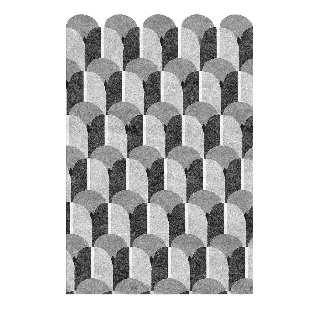 Boasting a modern geometric design of strong visual impact, this rug will make a singular statement in any minimalist or contemporary home. A tribute to mid-century design by architect and designer Giulio Brambilla, this rug is hand tufted from bamboo silk and New Zealand wool on two different levels to enhance the three-dimensional quality of the geometric motif set on the taupe background. This rug is available in other sizes and colors, and in a hand-knotted version.
