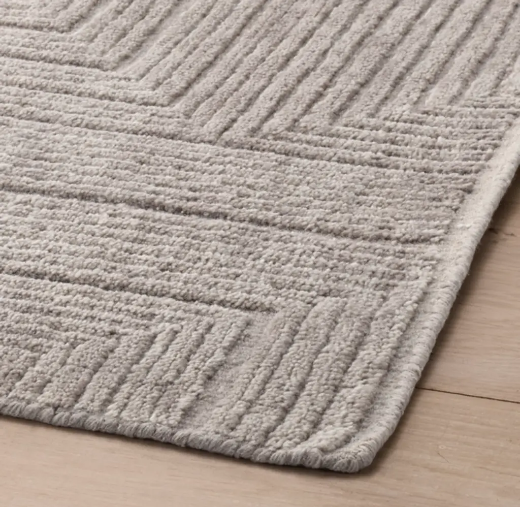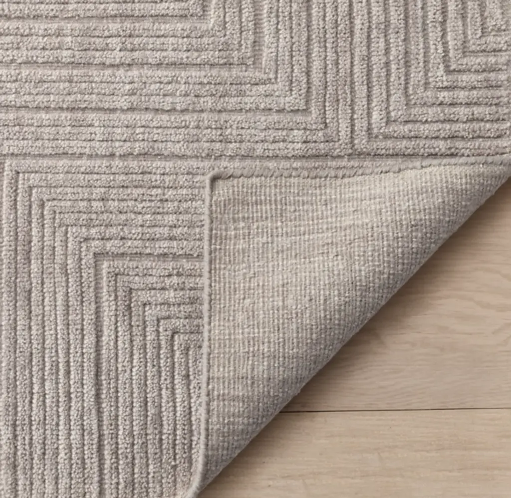 Combining contemporary design with ancient rug artistry, Settat weaves a fine-lined maze from traditional materials and methods. Masterfully knotted by hand, the pile is sheared and carved to create high-low detail imbued with the natural richness of the undyed, spun wool.