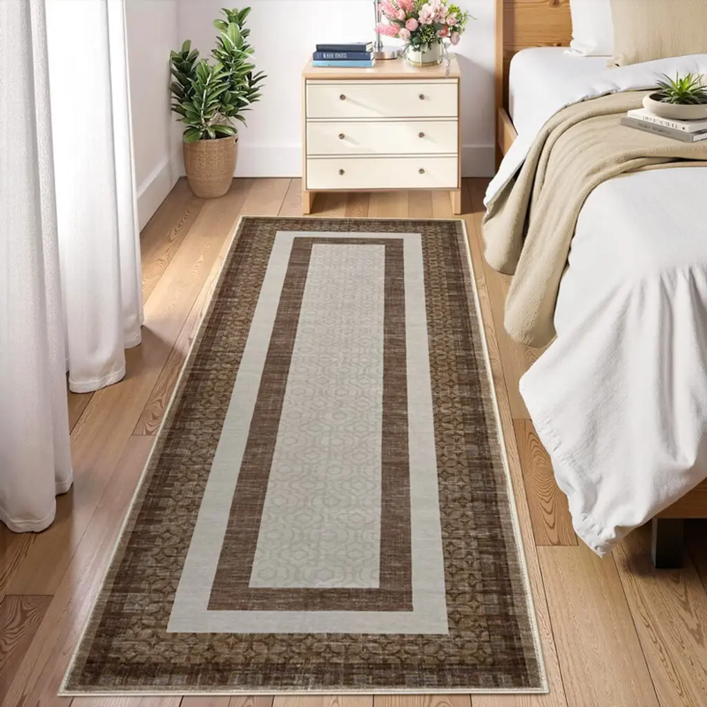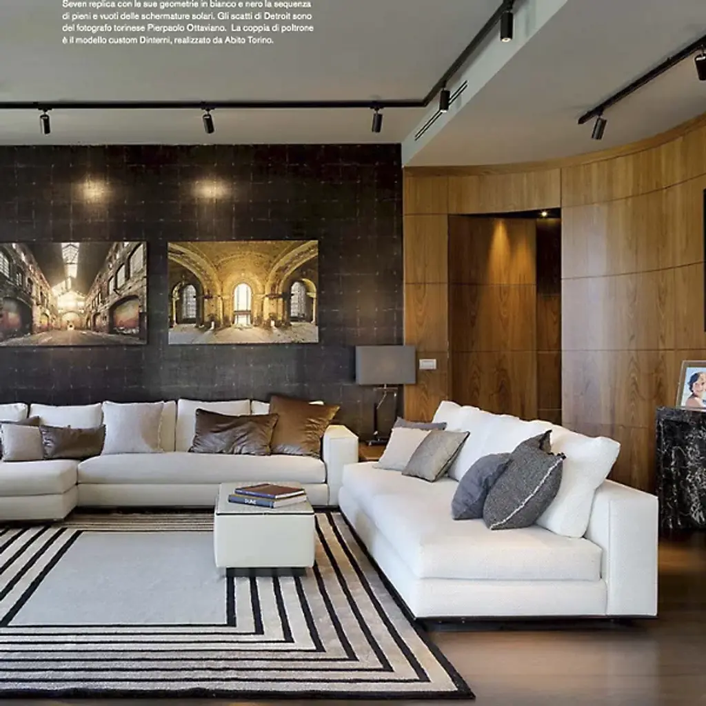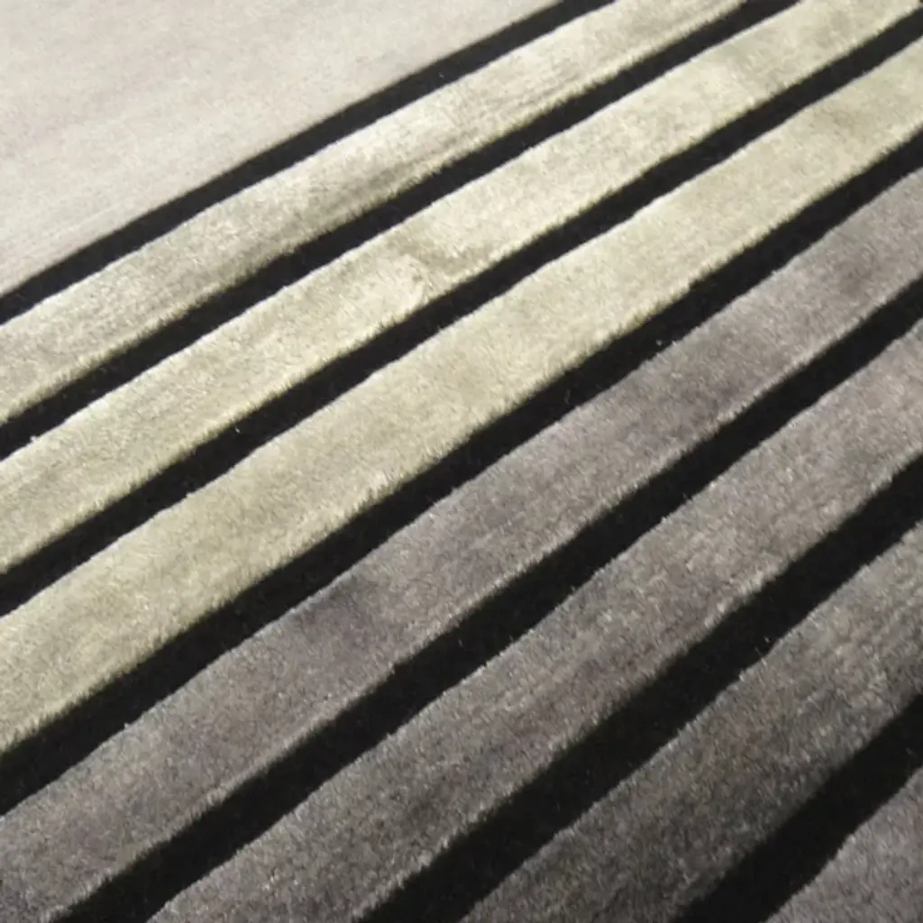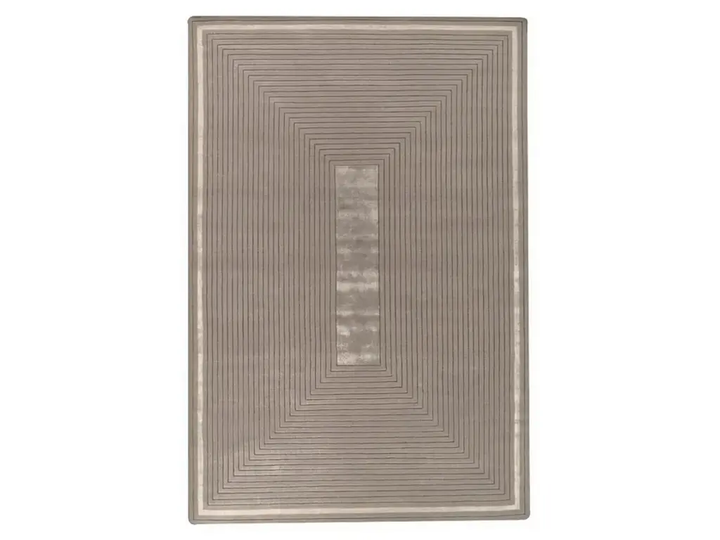 The Seven Area Rug from Illulian provides a delightful modern presence to indoor surroundings. An intricate contemporary construction that contrasts a color gradient with concentric rectangular patterns, its band patterns ripple out from a central block at the heart of the rug, its robust form artfully hand-knotted by Nepalese artisans from a wool-silk blend.