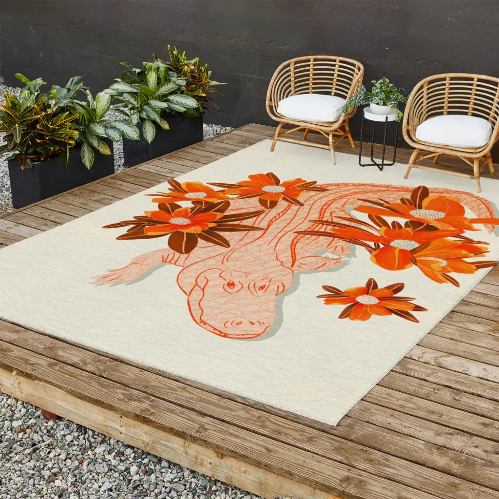 Sewzinski Alligator And Camellias Outdoor Rug, 8'x10'
