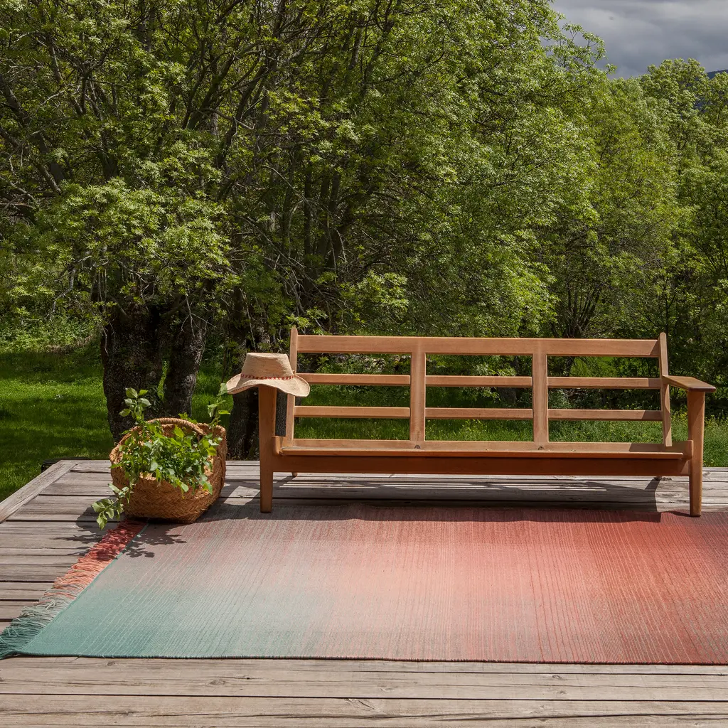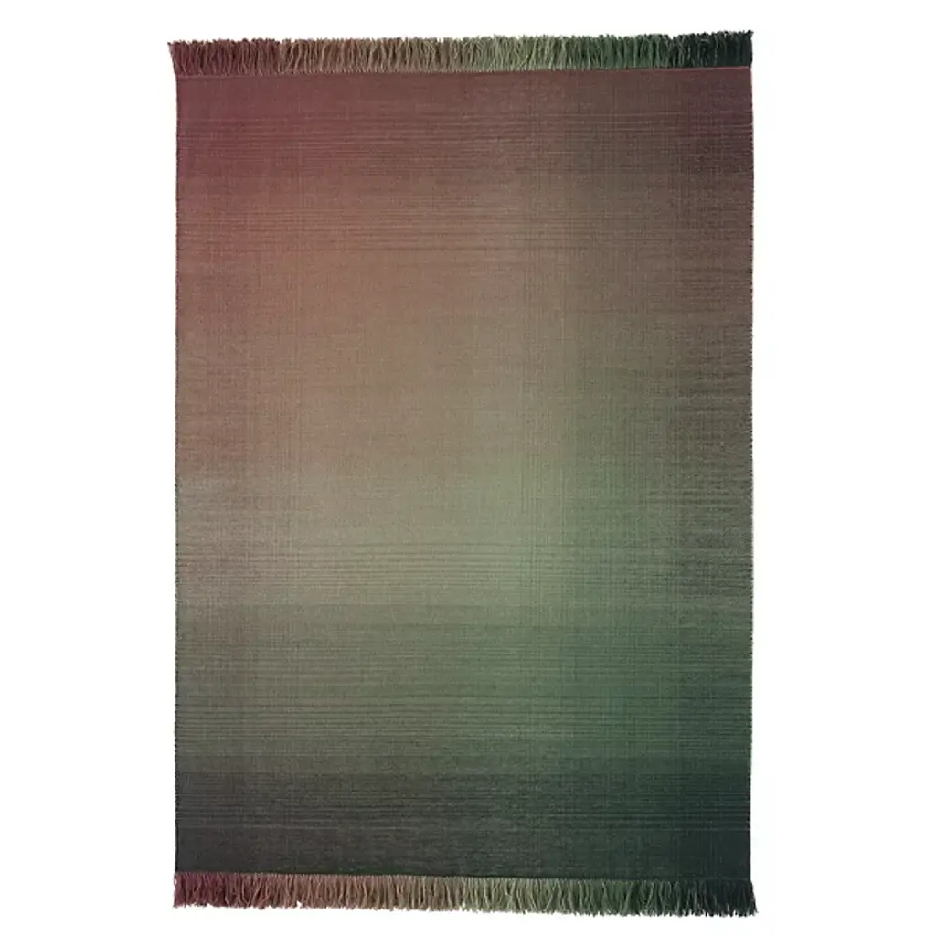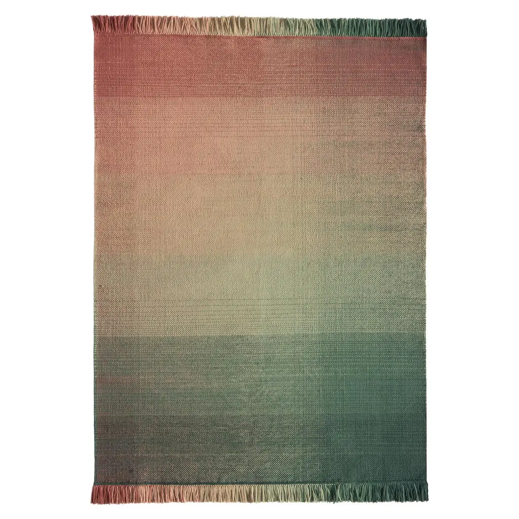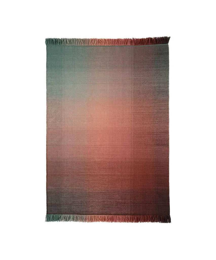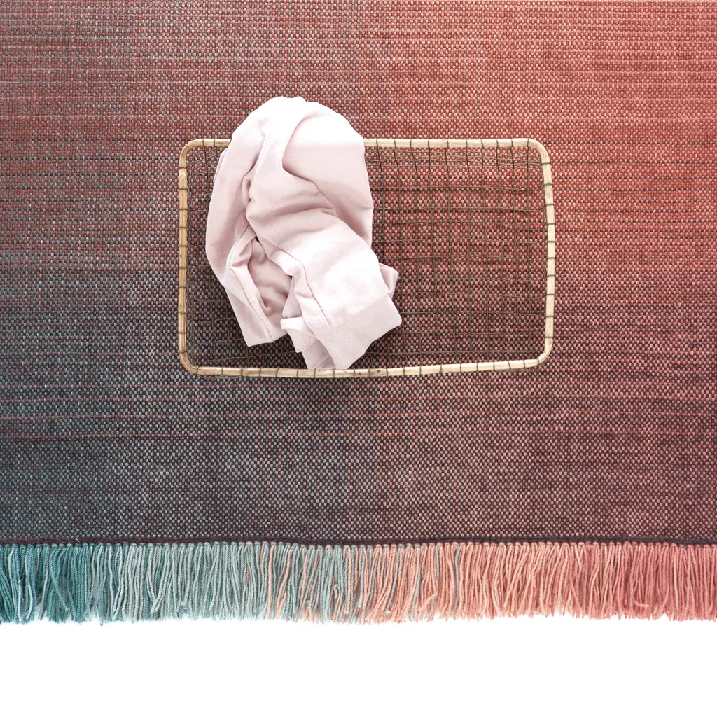 The Shade collection is inspired by magical moments in nature where colors melt and speak for themselves. Designer Begüm Cana Özgür emphasizes: “this is a handmade flat-weave rug that generates an incredible and well-rounded diffusion of color. The surface releases a sense of tranquillity and well-being that is balanced by the penetrating vibration of colors.” This collection of exquisite simplicity reflects a complex technical process to achieve the density, regularity, and fluidity of the desired effect. Two gradients converge in each rug, one vertical and one horizontal, in the same plane, harmonically using six transitional shades. Shade is available in four ombré palettes: from turquoise to eggplant, russet to Klein blue, raspberry to forest green and grey to brownish garnet.