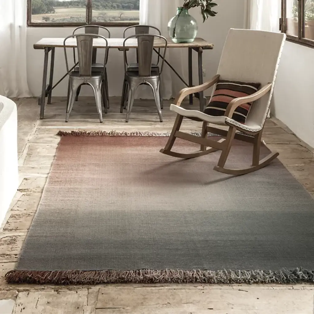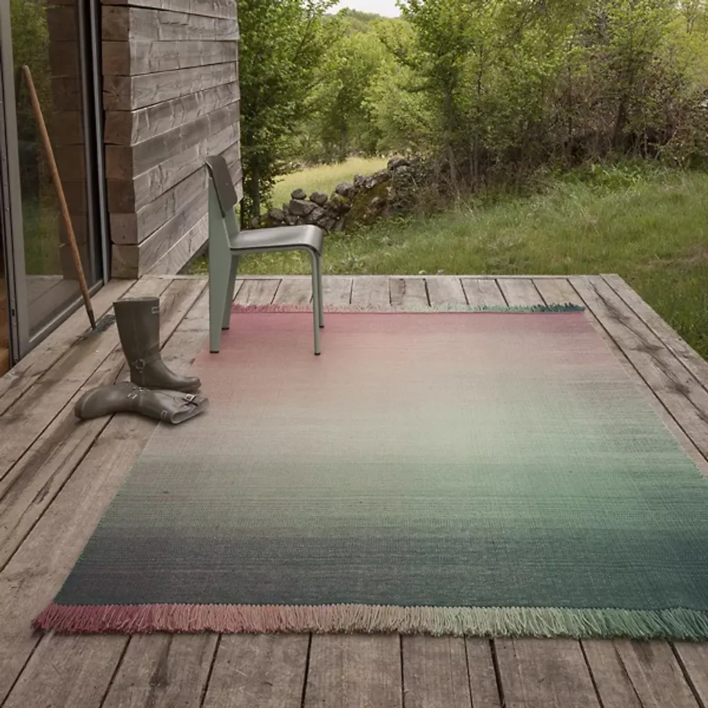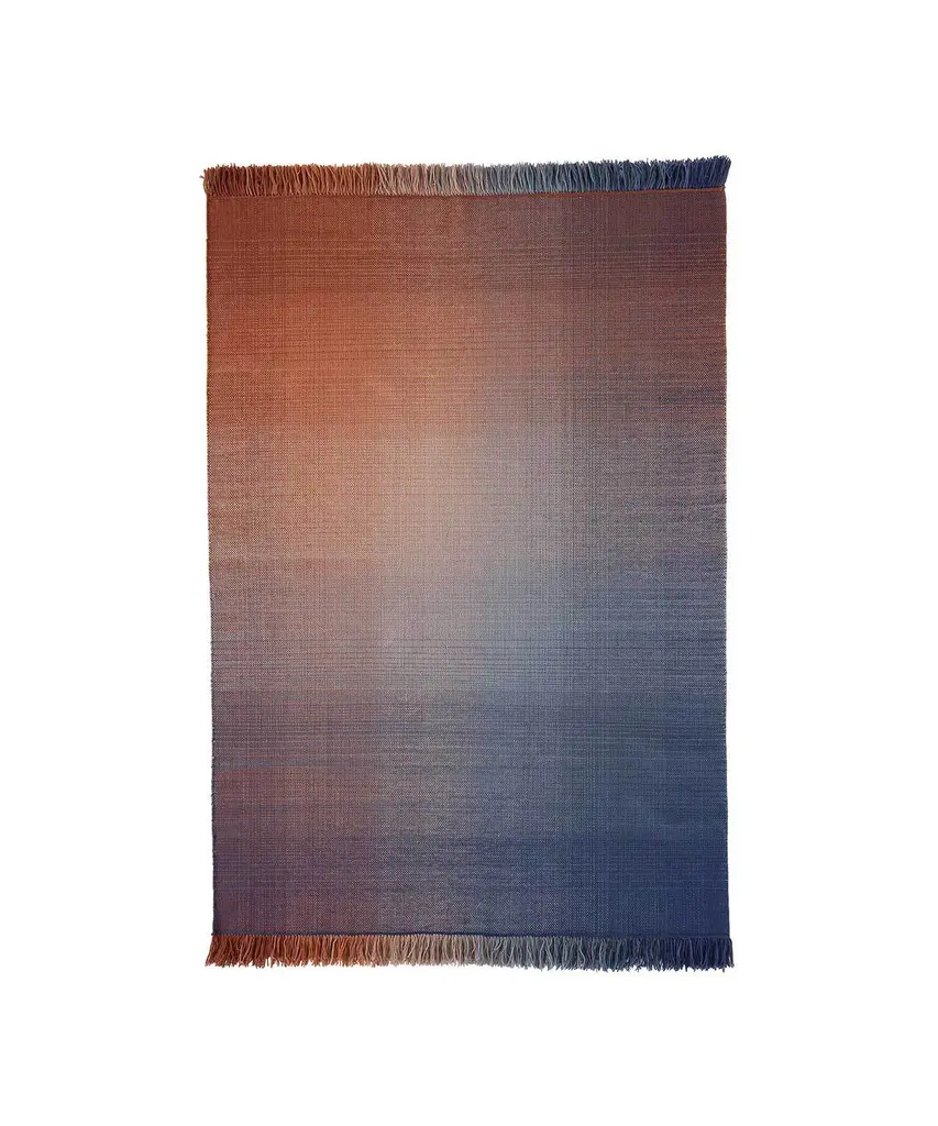 Inspired by those magical moments in nature when one color melts into another, the Nanimarquina Shade Rug portrays the harmonious blend of different colors and tones. Taking cues from examples such as a sunset or or the ocean blending into the sky at dusk, its nearly impossible to tell where one color ends and the other begins, creating a quiet personal space with diffused color.