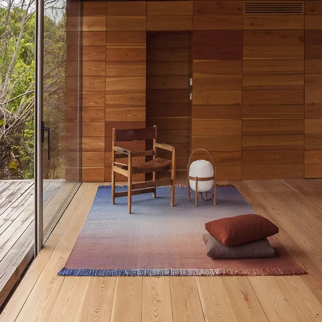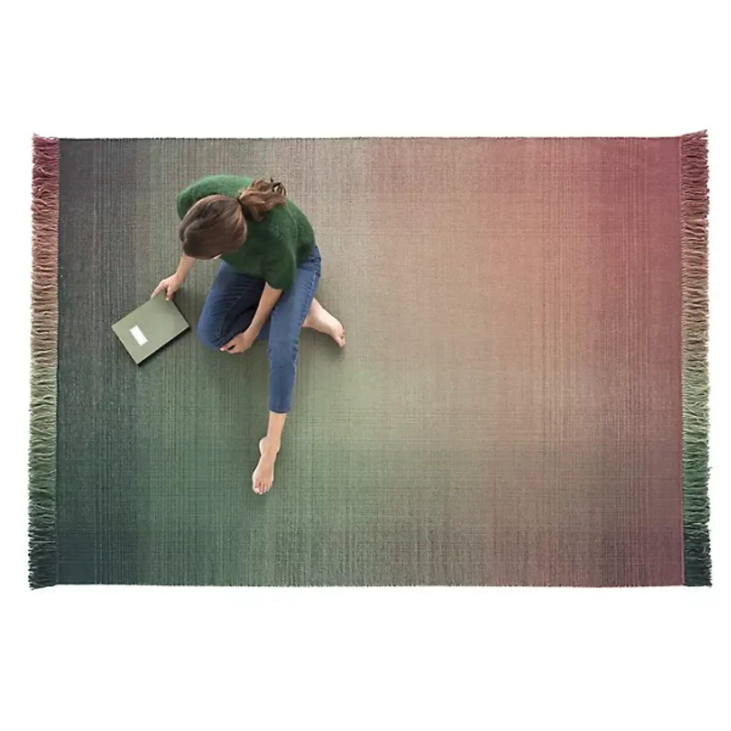 Inspired by those magical moments in nature when one color melts into another, the Nanimarquina Shade Rug portrays the harmonious blend of different colors and tones. Taking cues from examples such as a sunset or or the ocean blending into the sky at dusk, its nearly impossible to tell where one color ends and the other begins, creating a quiet personal space with diffused color.