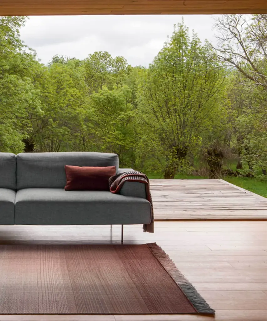 A hand-loomed rug made from ombr_ yarns that are carefully woven to create an immensely saturated gradient pattern. The Shade collection is inspired by magical moments in nature where colors melt and speak for themselves. Designer Begum Cana emphasizes: "this is a handmade flat-weave rug that generates an incredible and well-rounded diffusion of color. The surface releases a sense of tranquillity and well-being that is balanced by the penetrating vibration of colors."This collection of exquisite simplicity reflects a complex technical process to achieve the density, regularity, and fluidity of the desired effect. Two gradients converge in each rug, one vertical and one horizontal, in the same plane, harmonically using six transitional shades.The rug is available in three ombr_ palettes: from turquoise to eggplant, russet to Klein blue, and raspberry to forest green.Produced by award-winning Spanish rug manufacturer nanimarquina.