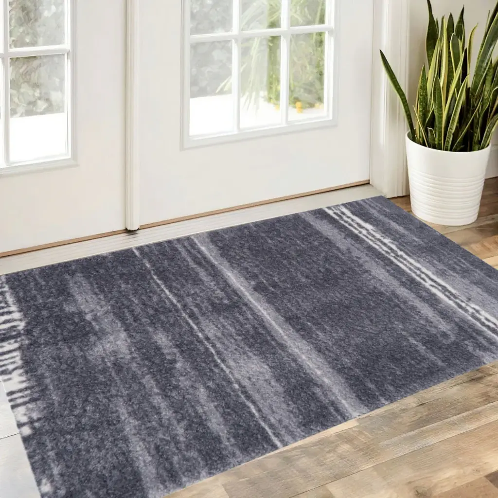 This low profile Shades of Gray Brushstokes Washable Floor Mat is a game changer. A fade resistant abstract brushstroke lines design with netural shades of gray and white provides a fashion forward look for a mat that is super sturdy and can easily be thrown into the washer and dryer to clean. The premier formula rubber backing used makes this nylon rug slip resistantr with no need for an additional pad, and the backing will hold up during the wash and dry! The low profile means it easily fits under doors. Combine fashion and style with real life functionality with this great area rug/door mat. 27.5" x 47" x .3"