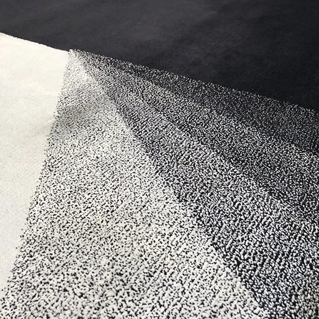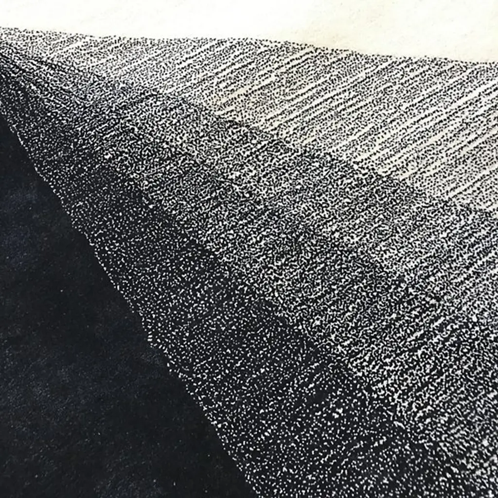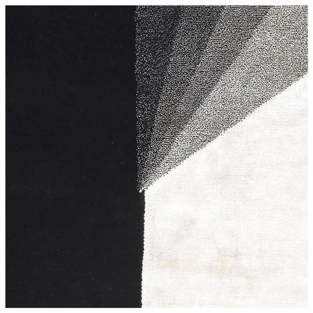 Bring elegant intrigue to spaces with the clever, contrasting elements of the Shadow Area Rug from Illulian. An inspired design from Palomba Serafini contrasts a dark, rectangular side with an angular gradient of greyscale colors. The white trapezoid shape contrasts well with the gradient around it. Its knotted construction of silk and wool is made in Nepal and provides a modern update to traditional styles.